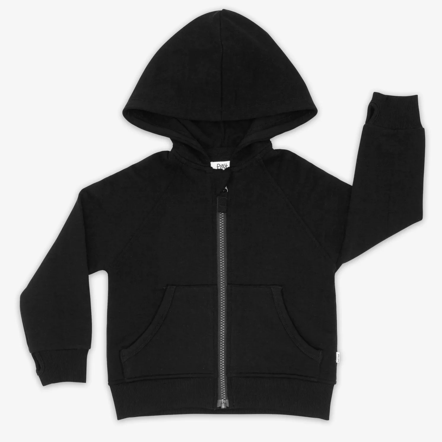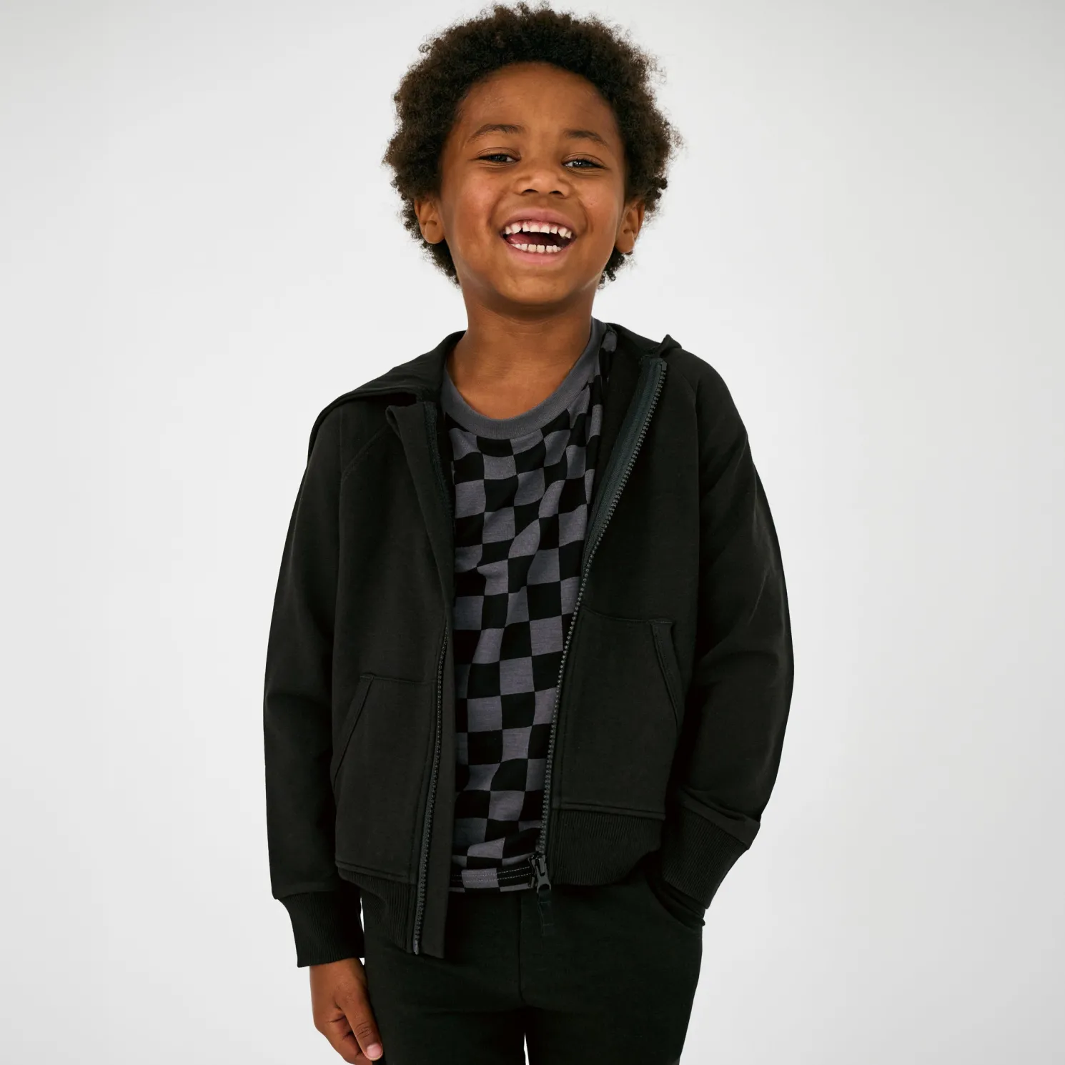 Layer up, little love! Made from super soft & durable Soluxe® Bamboo with no scratchy tags, this Black Zip Hoodie will be their new fave. Pair it with our cozy joggers or leggings for school, playtime… anytime, really!