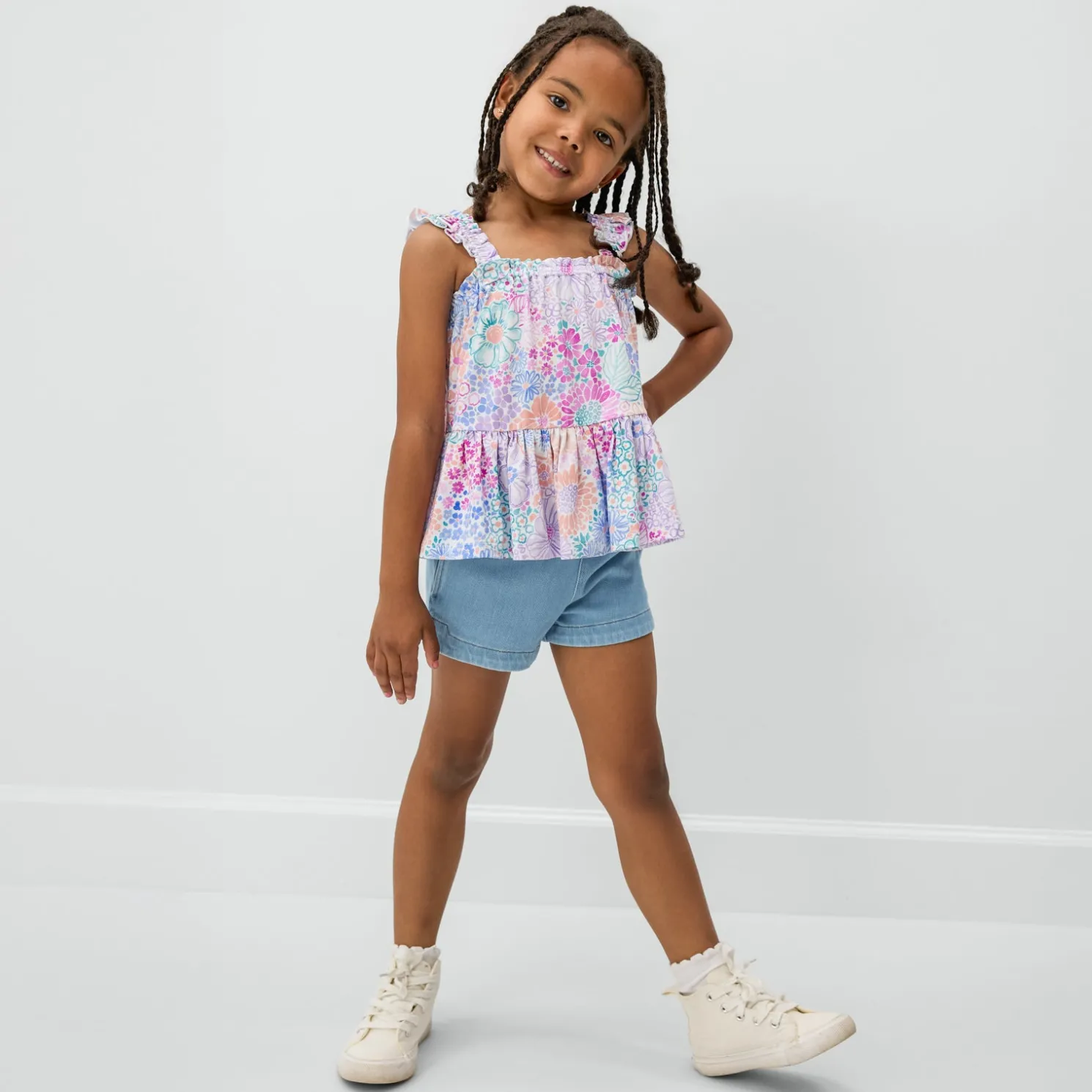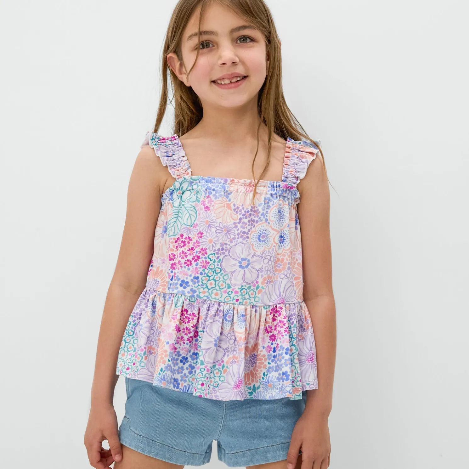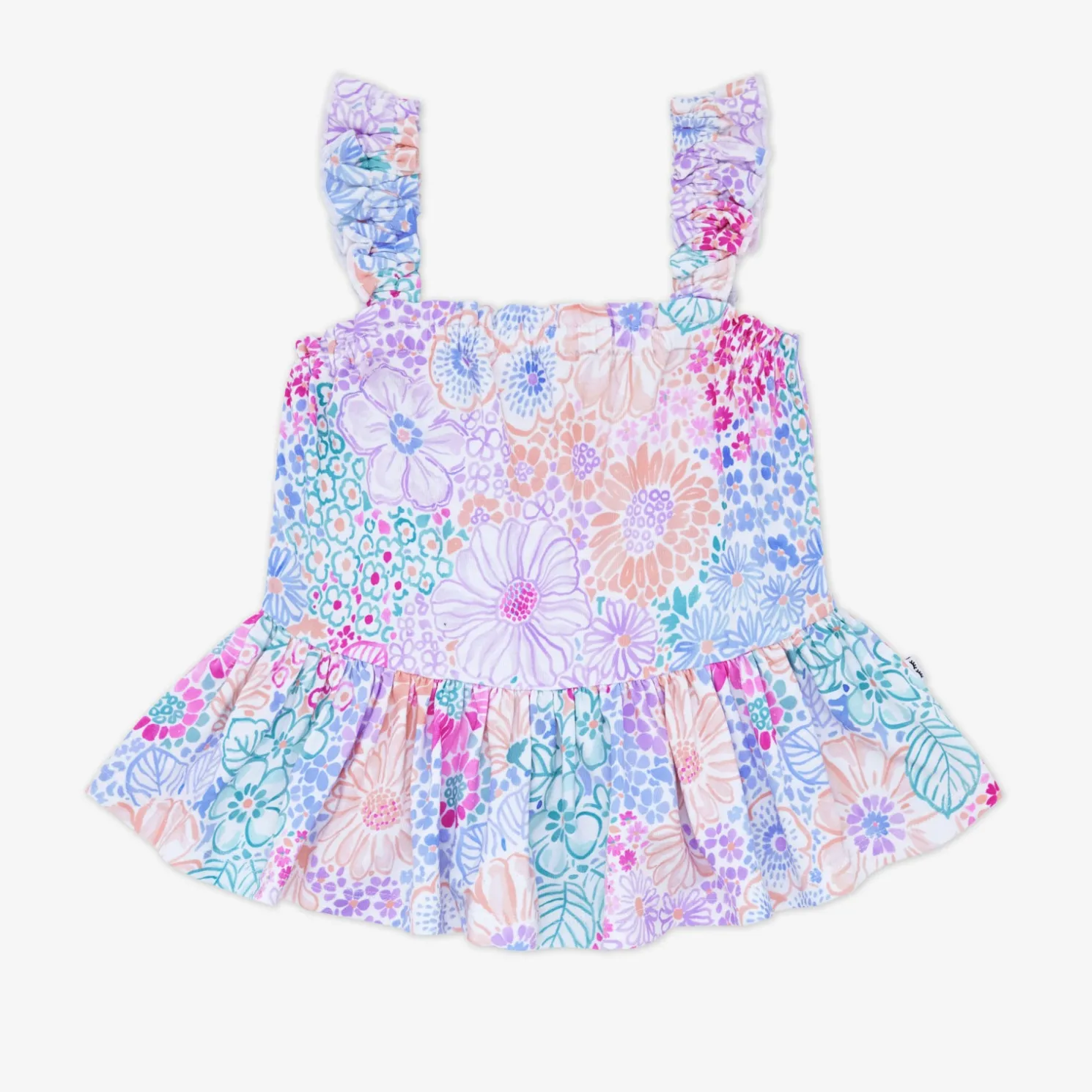 The Doodle Blooms Flutter Tank is a fresh-picked fave for sunny days! Made from durable Soluxe® Bamboo, the tagless design is petal-soft and gentle on sensitive skin. With flowy flutter sleeves and a whimsical hand-drawn floral print, this tank lets them Play in style and comfort when paired with their favorite LS bottoms!