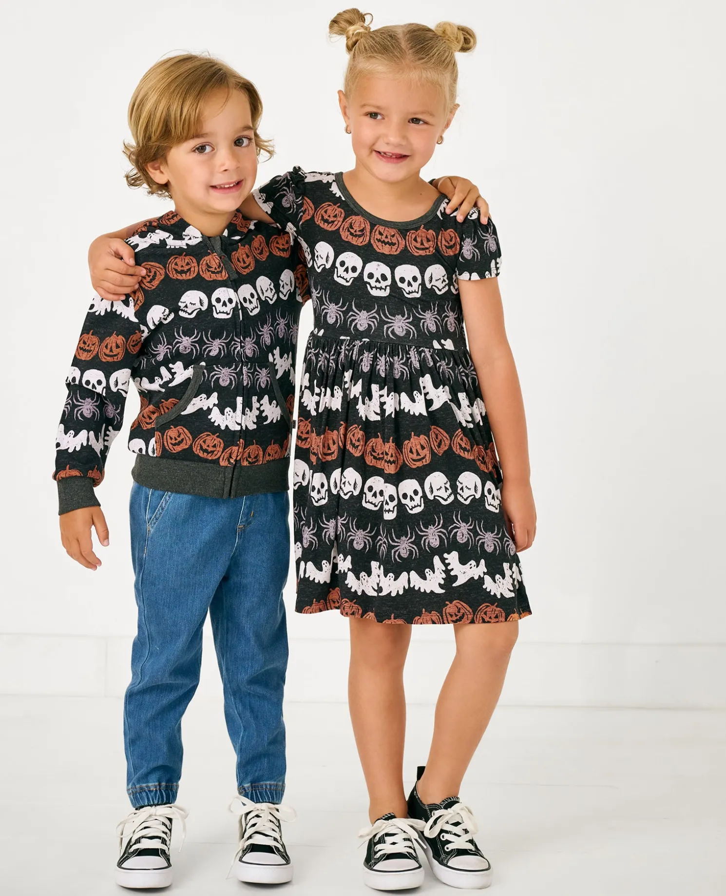 Get ready for spooky season! This kids hoodie features classic Halloween haunts in a timeless design. Made from durable Soluxe® Bamboo, the Hallows Eve Zip Hoodie has a lined hood and thumbhole cuffs with side pockets for storing Halloween treats. It’s perfect for trick-or-treating and layering with their LS faves all fall!