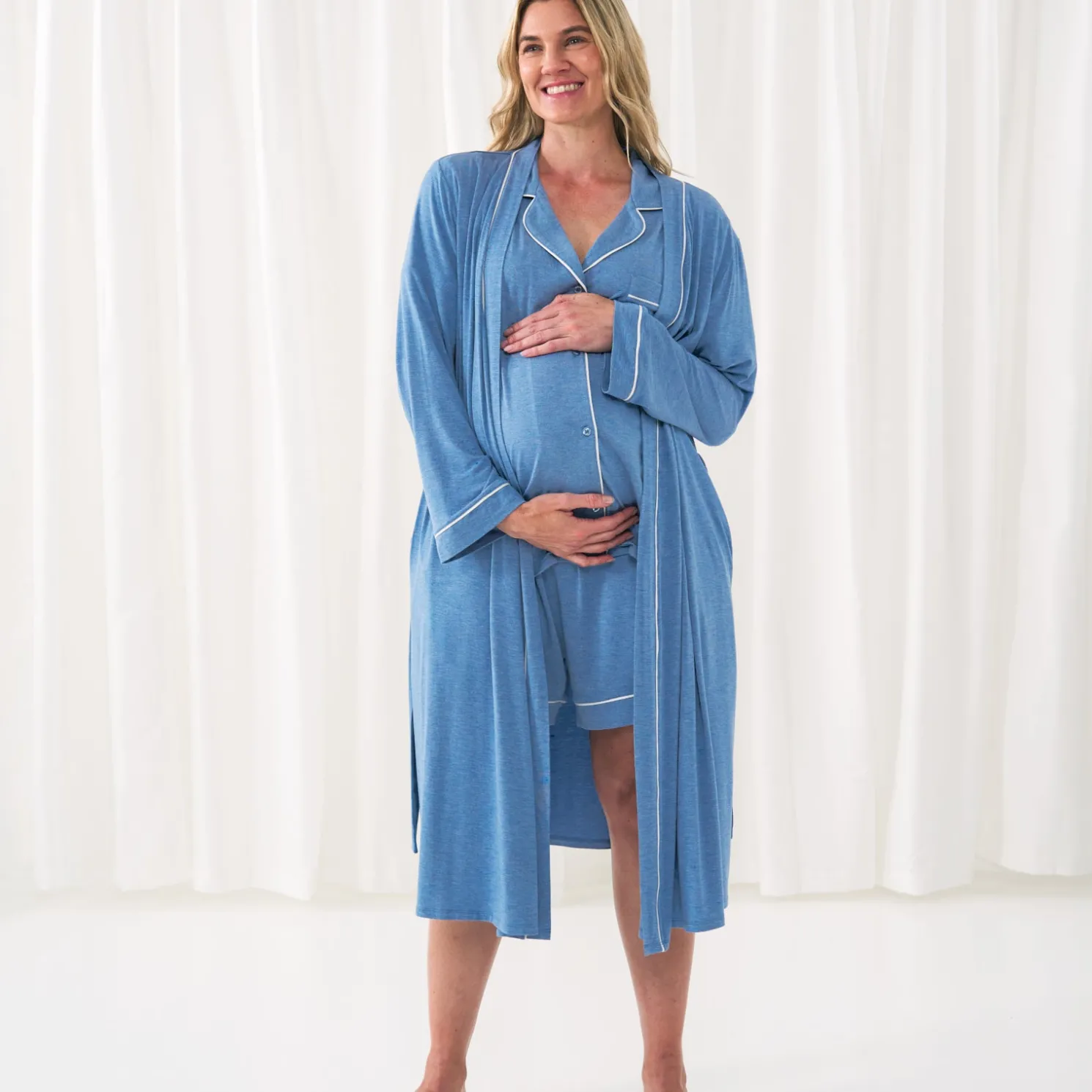 Our Women’s Pajama Sets are designed for each stage of mama-hood — but also, just everyday coziness! Made from buttery soft Lunaluxe® Bamboo, this Heather Blue PJ Set boasts a button-down top for easy nursing access and contrast piping for a cute & classic look. Snag a matching sleep style for your little one!