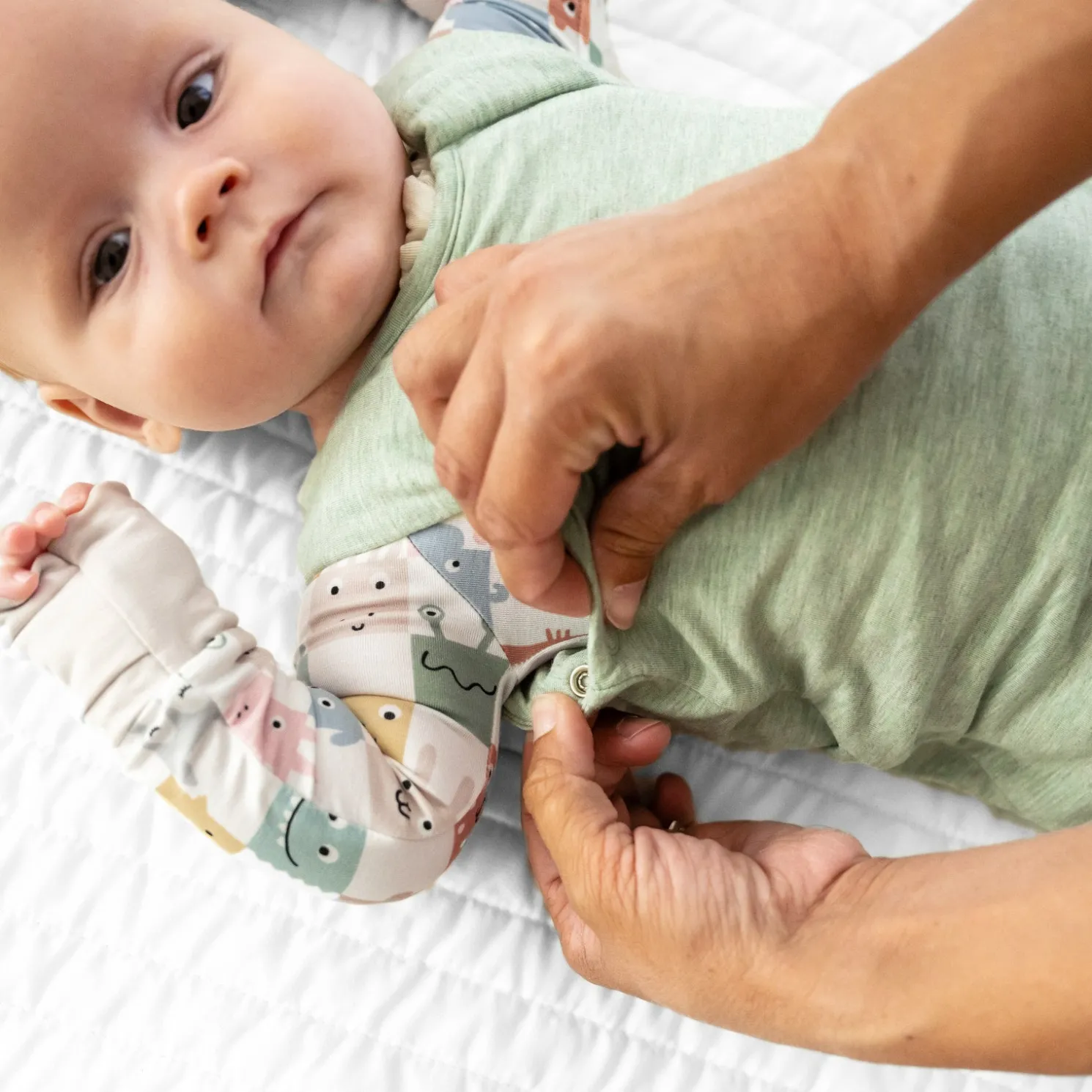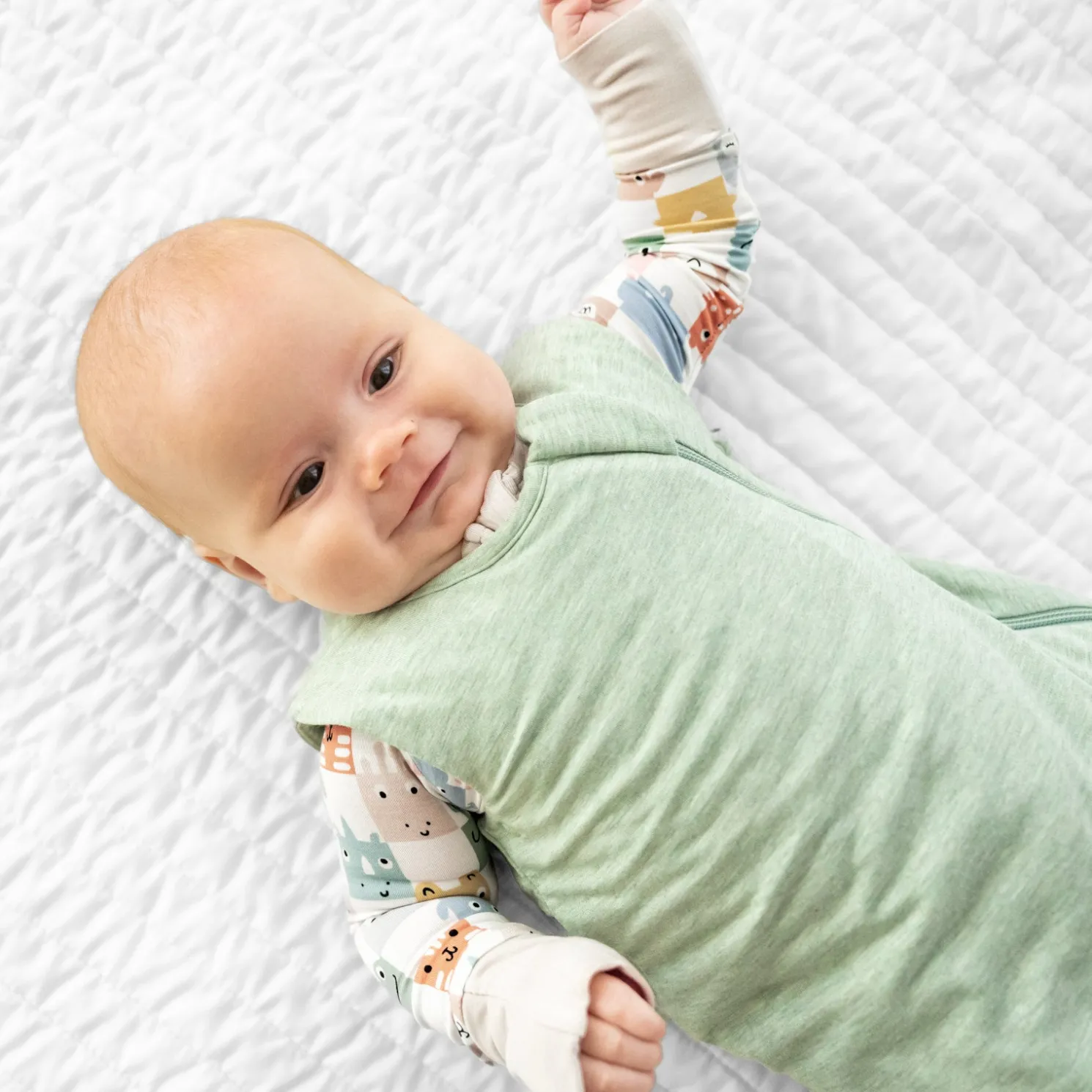 Wrap your little one in comfort with our best selling Sleepy Bag in serene Heather Sage. Crafted from buttery soft Lunaluxe® Bamboo, this sleep sack provides cozy warmth and is designed with a front double zipper, adjustable snaps, and smooth shoulder seams for a perfect night’s sleep. Choose from three convenient weights for sweet slumber, no matter the temps!