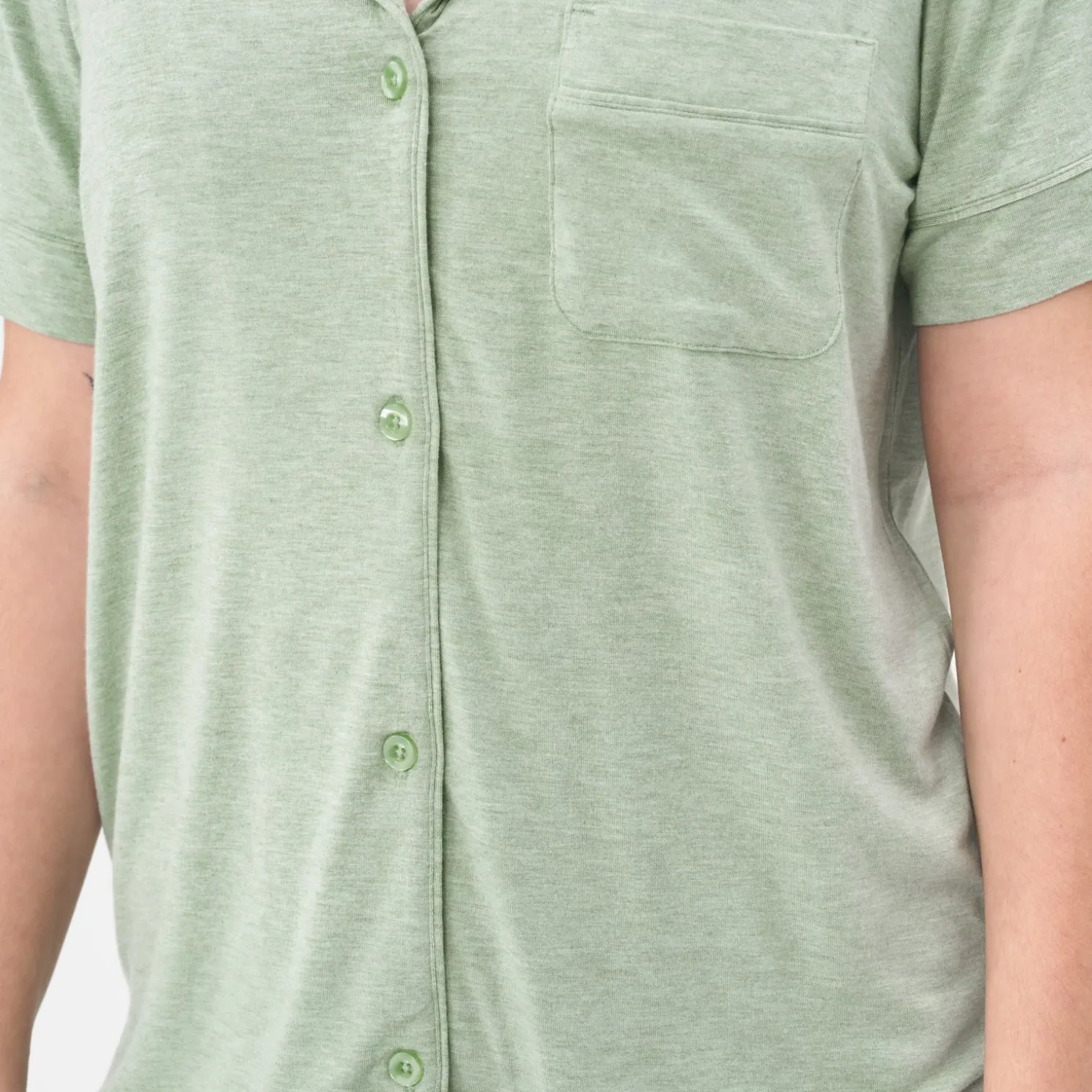 Our women’s pajama sets are designed for each stage of mama-hood — but also, just everyday coziness! Made from buttery soft Lunaluxe® Bamboo, this Heather Sage PJ set boasts a button-down top for easy nursing access and contrast piping for a cute & classic look.