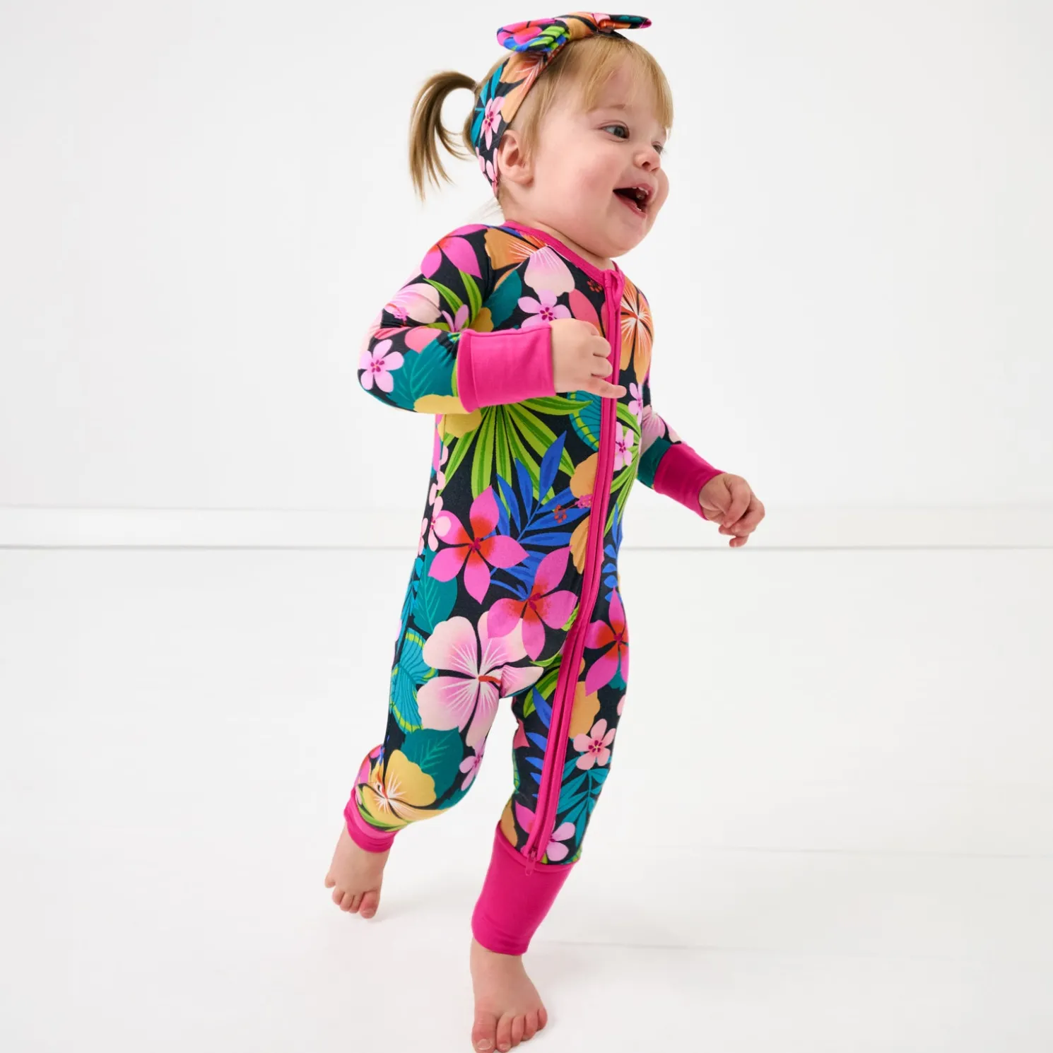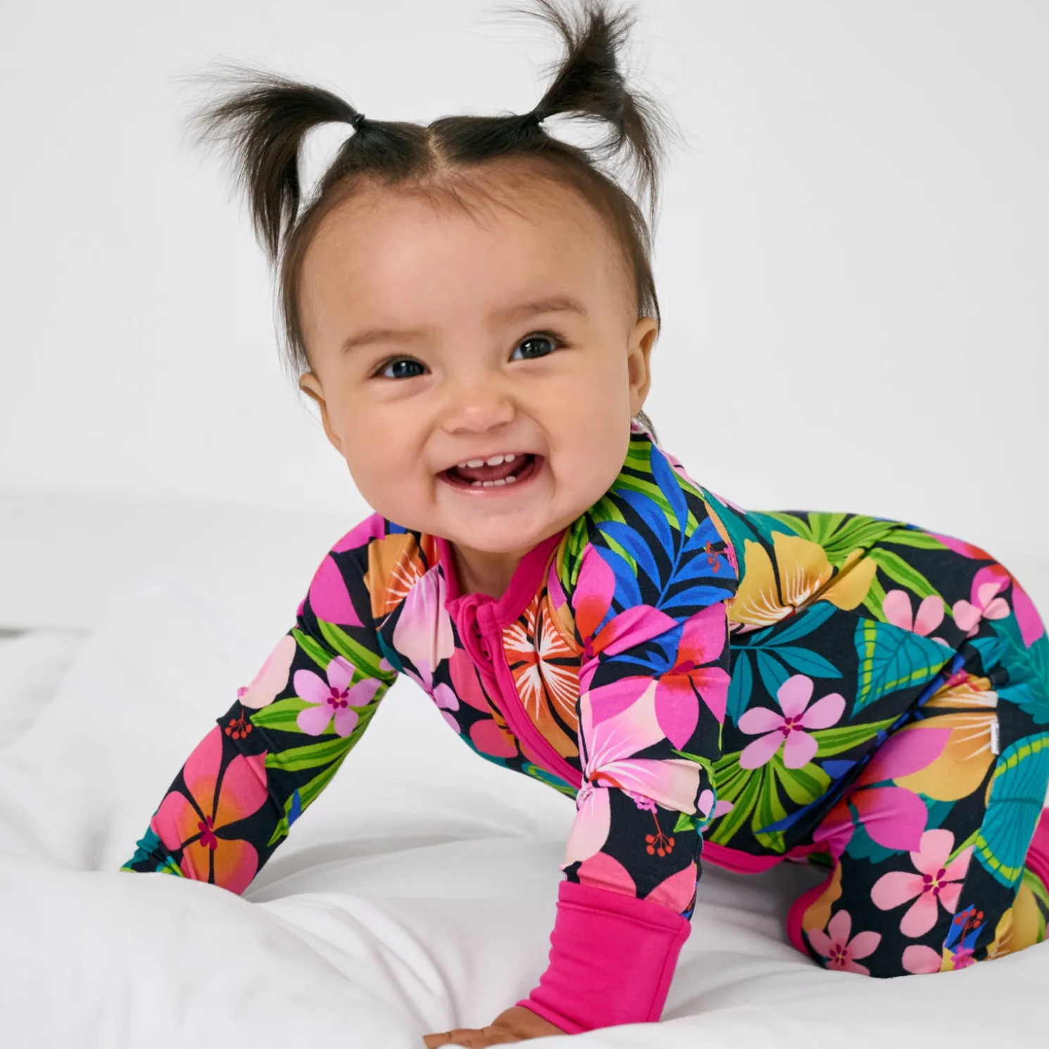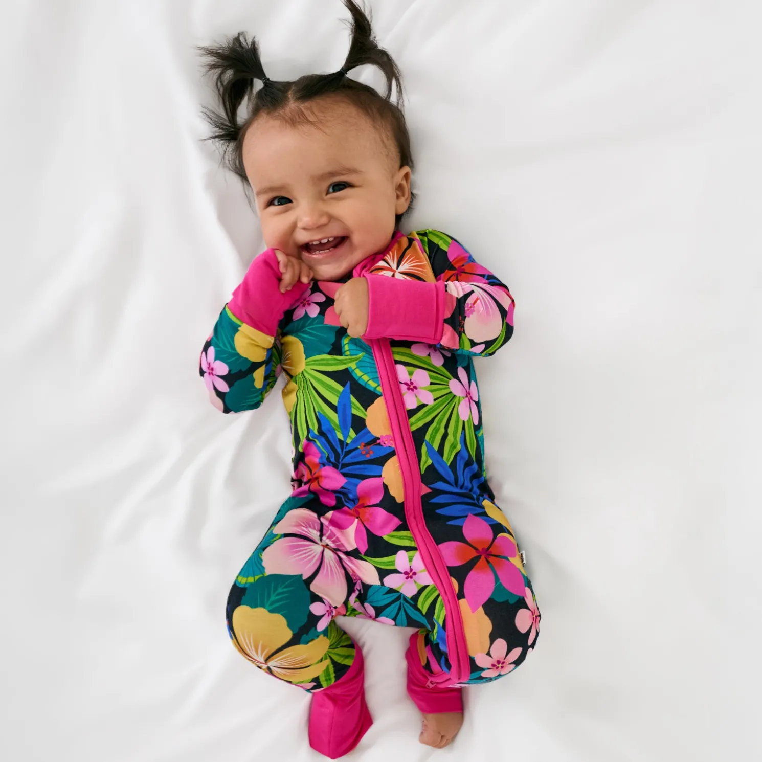 Welcome to pajama paradise! The Jungle Blooms Zippy is blooming with tropical florals and bold colors in our signature Lunaluxe® Bamboo. It’s oh-so soft with thoughtful details, like fold-over mittens, convertible foot cuffs, and a convenient double zipper for easy changes. No snaps, no fuss — just island vibes all the time!
