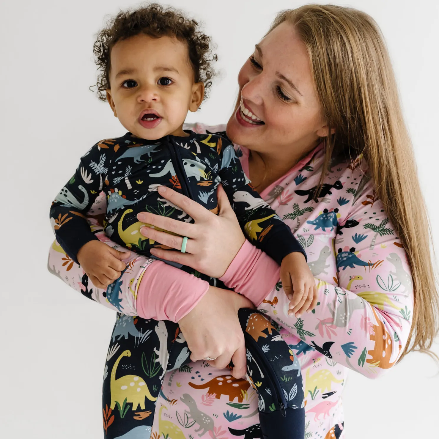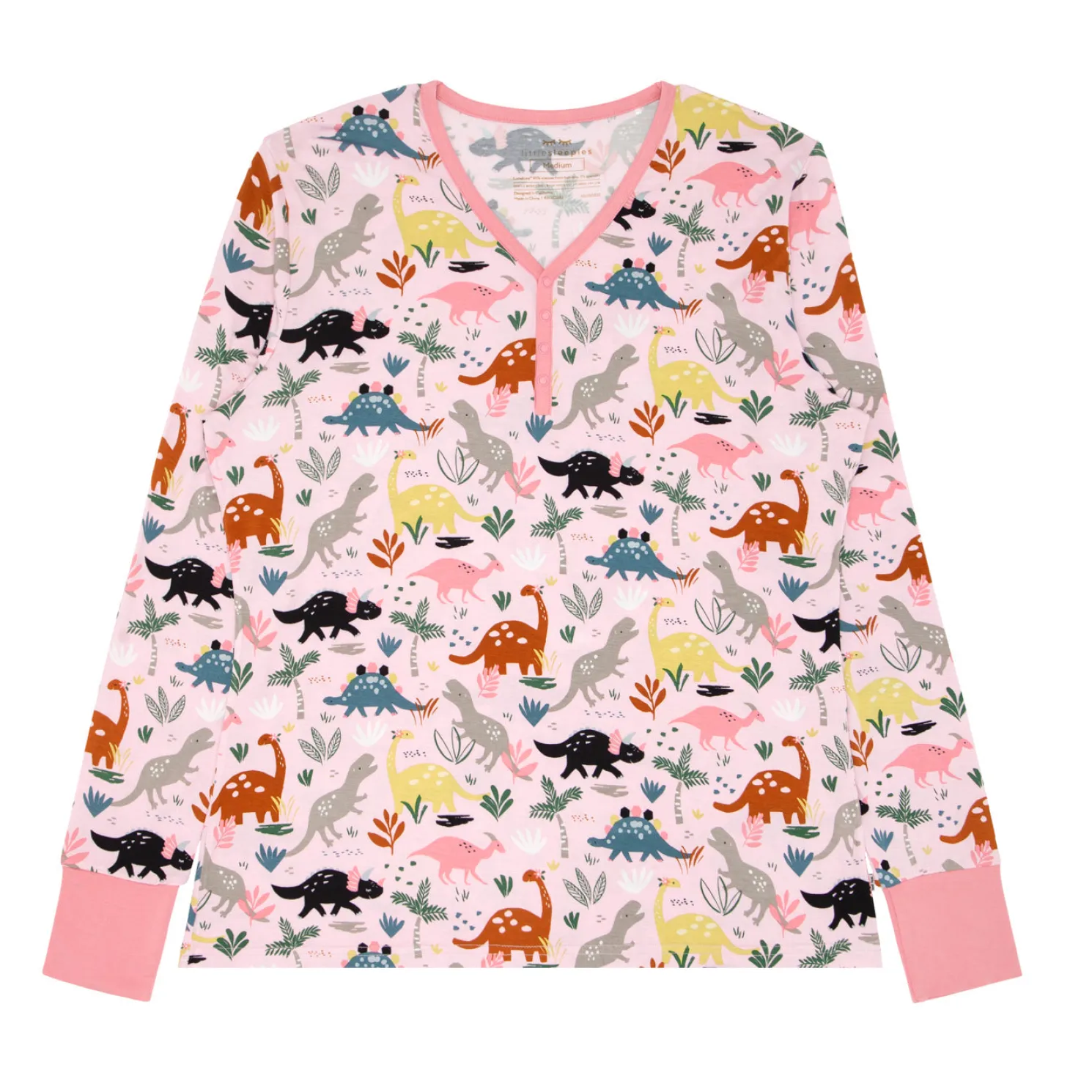 Get ready to roar with the kiddos in this dino-mite print. Featuring all their (and your) favorite dinosaurs on a soft pink background, this PJ Top is crafted from our custom-milled Lunaluxe® Bamboo, complete with front snaps for nursing ease. Pair it with the matching pants to complete the set, then grab styles for the whole fam!