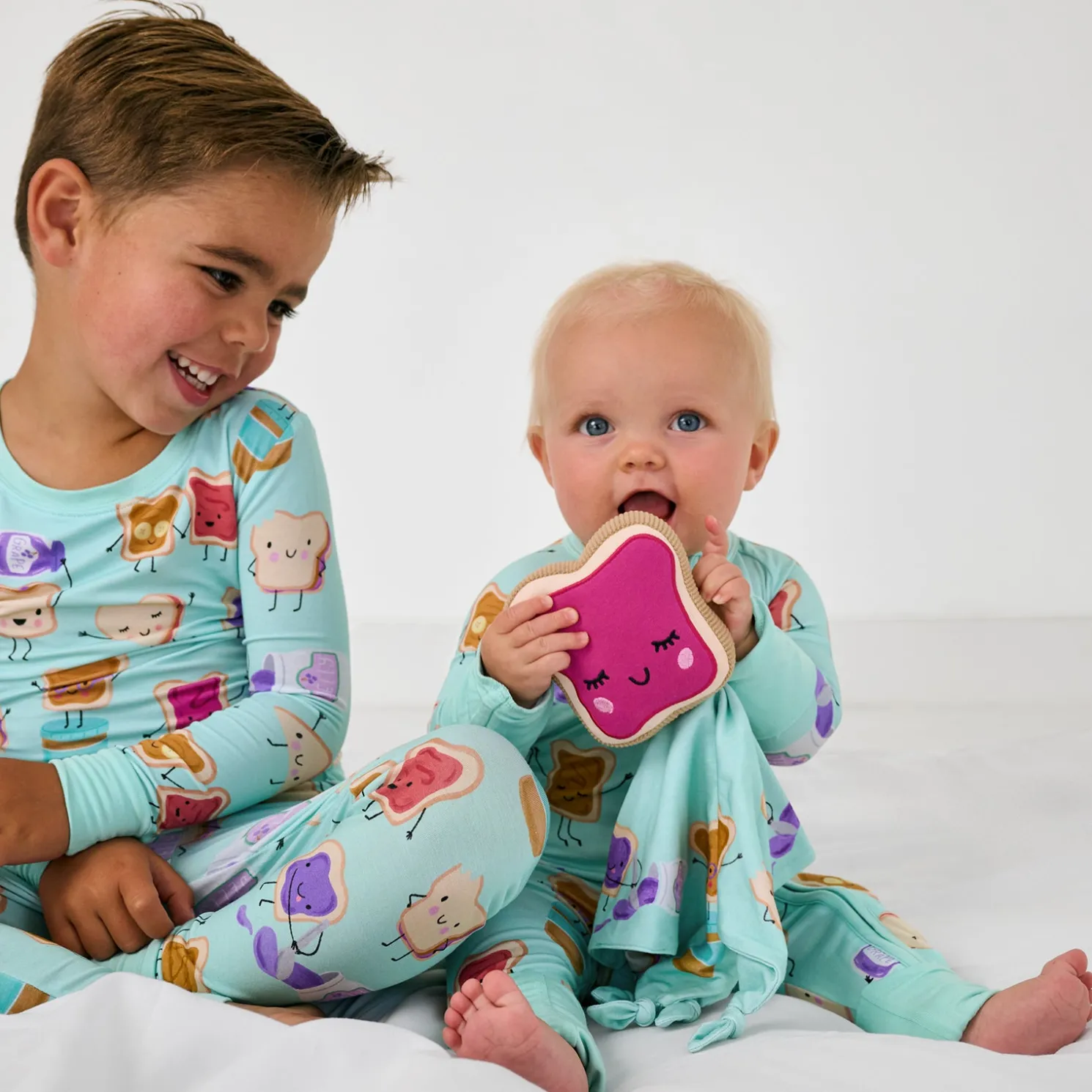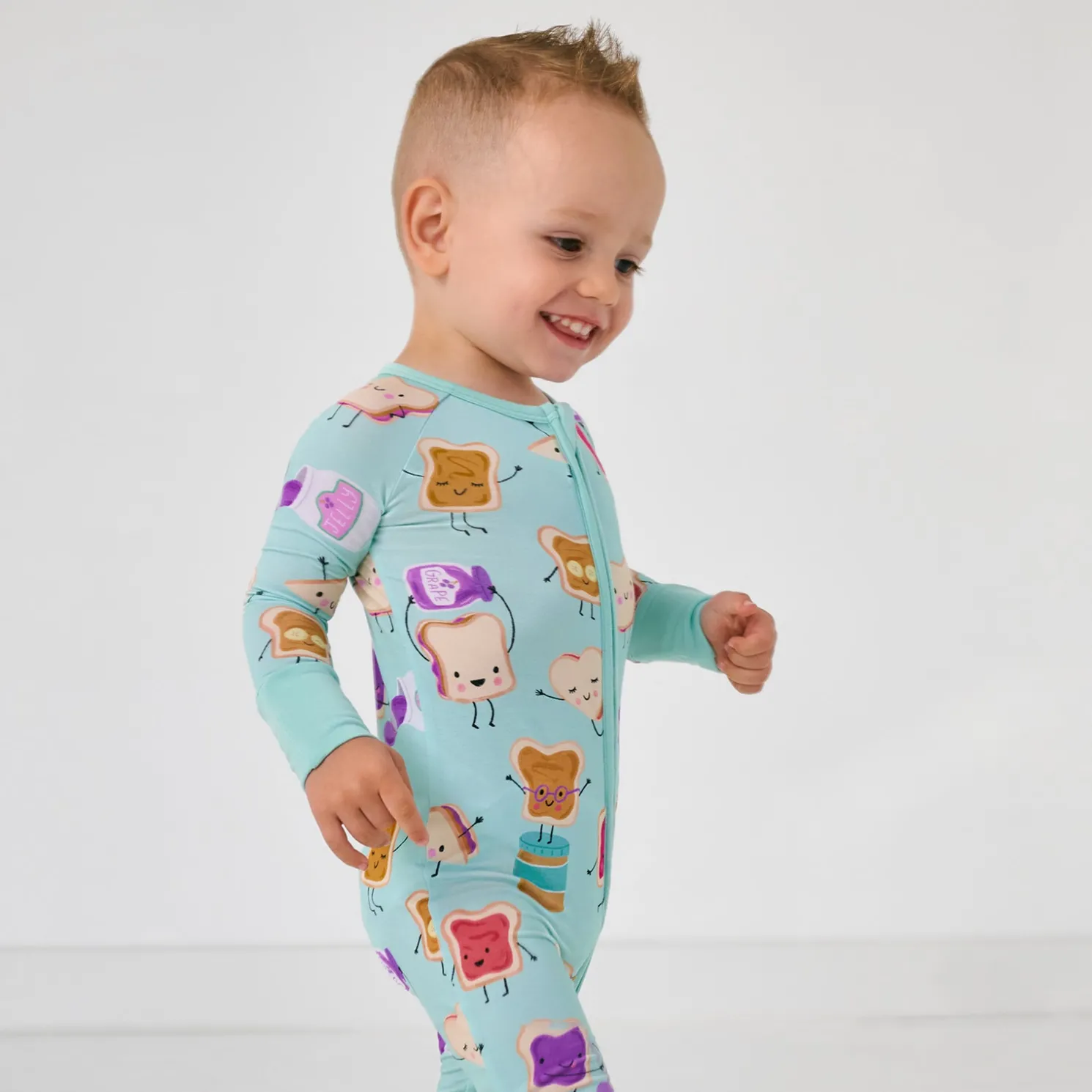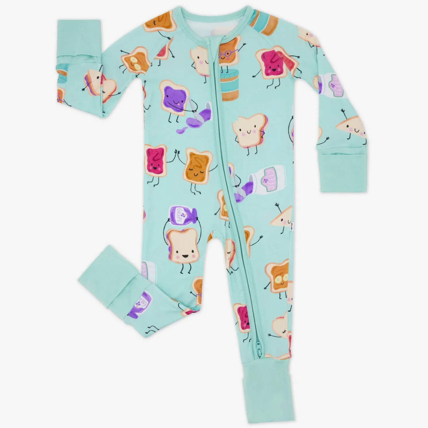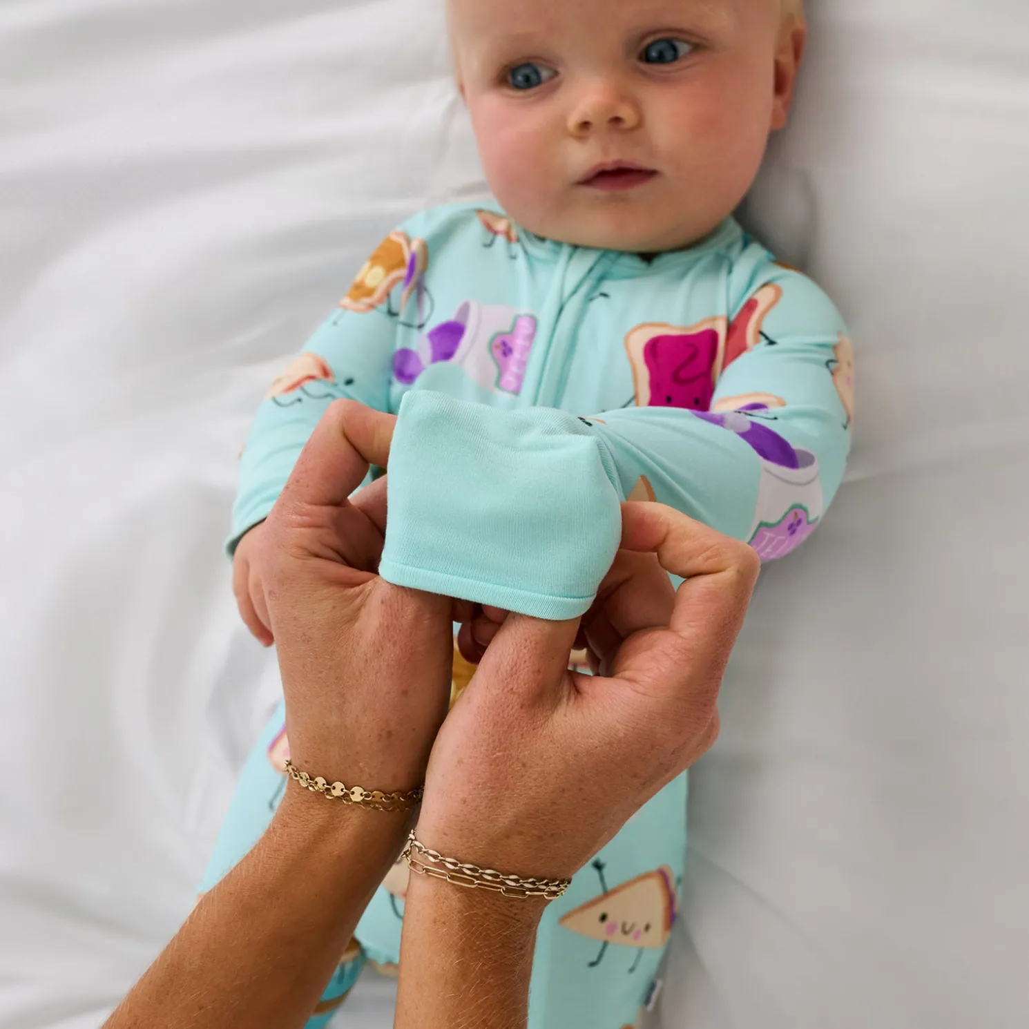 The sweetest jammies and sammies! This bamboo baby sleeper is here to spread smiles. Made from buttery soft Lunaluxe® Bamboo that’s gentle on sensitive skin, in a light blue hue that’s just so sweet! With fold-over mittens, convertible foot cuffs, and a convenient double zipper, the Lunch Buddies Zippy is love at first bite. Grab matching styles for the whole fam!