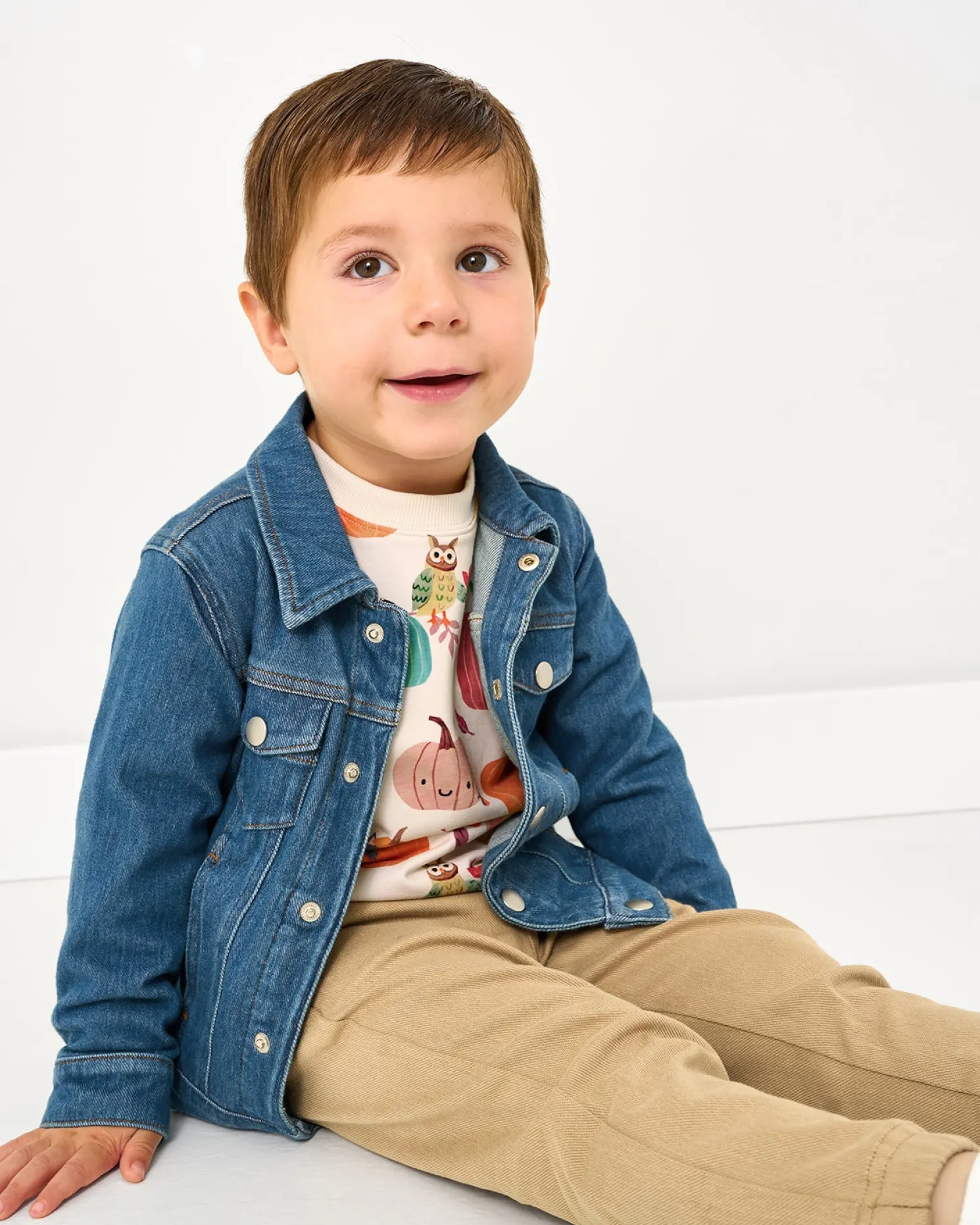 Keep cozy on crisp days! The Pumpkin Pals Crewneck Sweatshirt features sweet pumpkins and woodland friends on durable Soluxe® Bamboo with a French terry interior. This kids sweatshirt has a relaxed fit perfect for crunchy leaf pile jumps and pumpkin patch adventures. Mix & match with their fave LS bottoms!