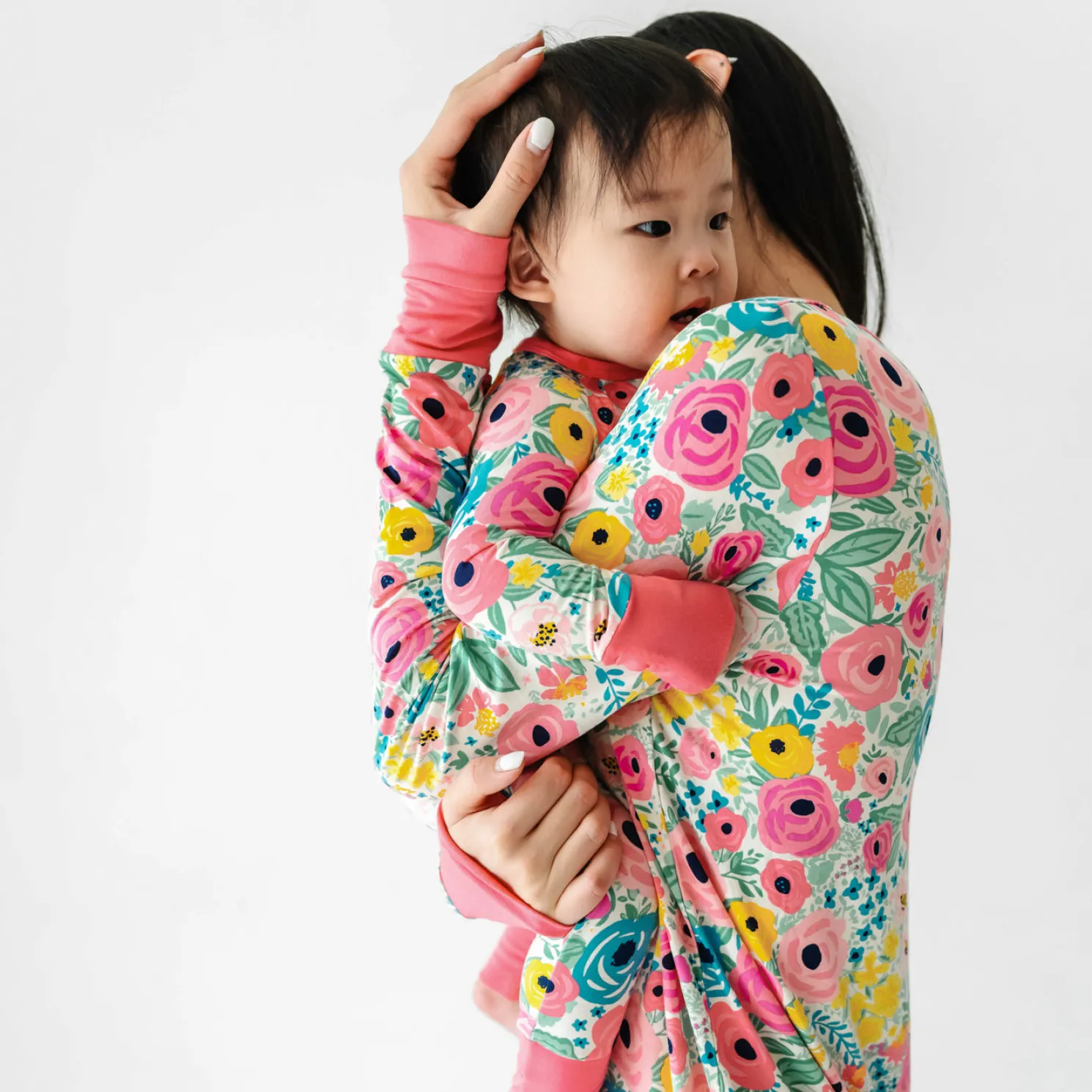 Prettiest PJs ever! Crafted from custom-milled Lunaluxe® Bamboo, this floral PJ Top has front snaps for nursing ease. We’re obsessed with the watercolor blooms in vibrant shades of pink, yellow and blue. Pair it with the matching pants to complete the set, then grab styles for the kiddos, too!