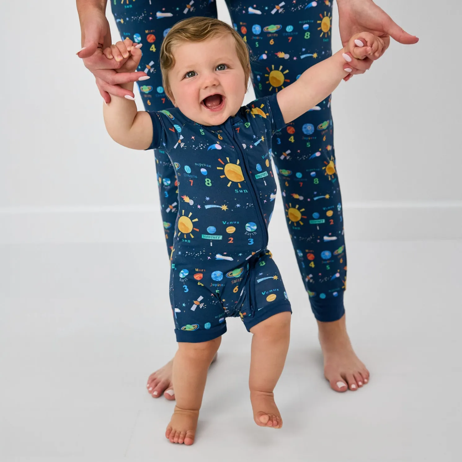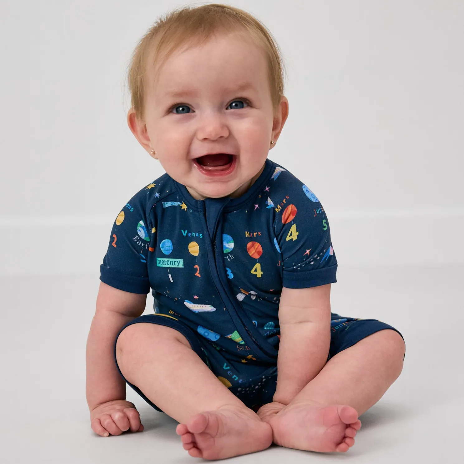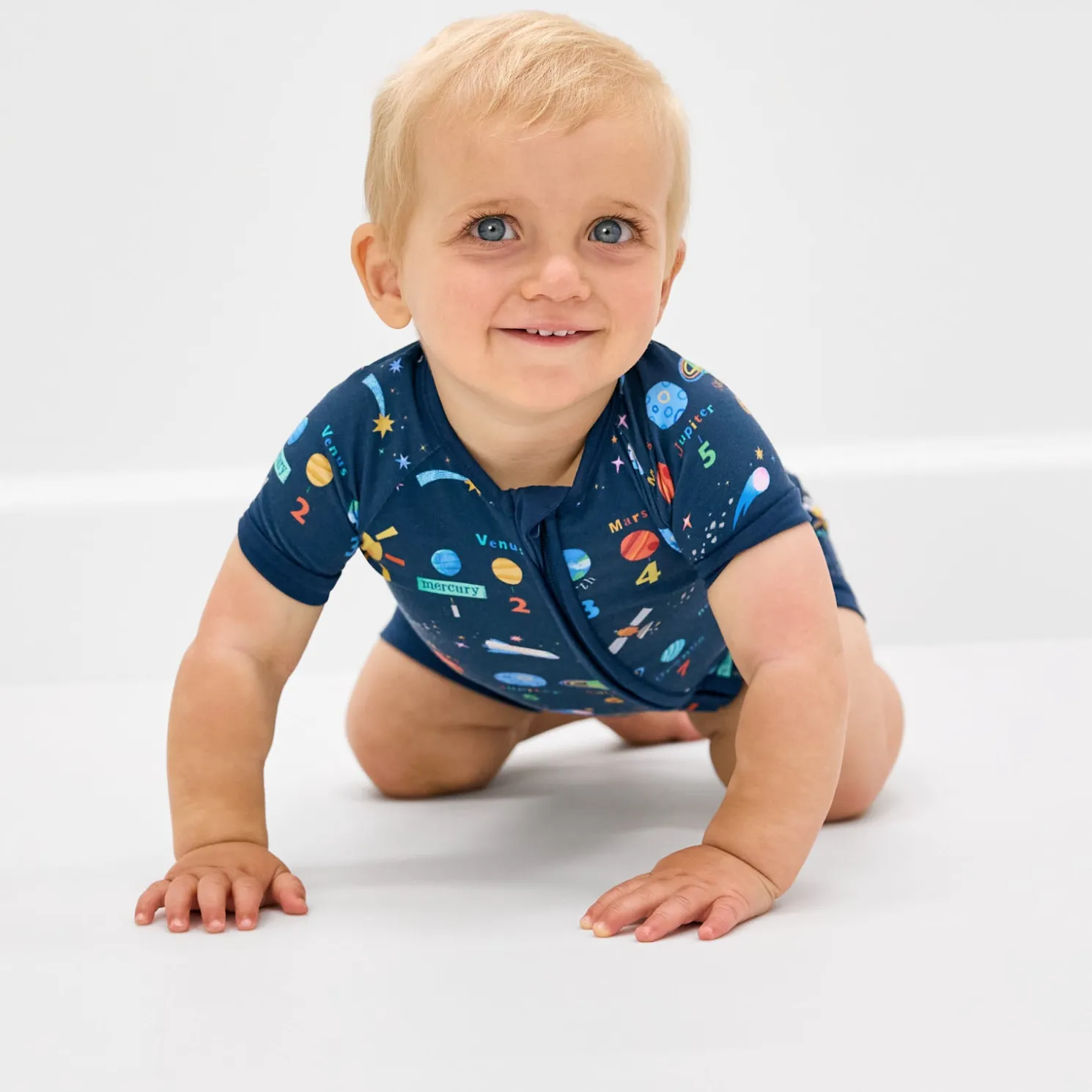 Out-of-this-world dreams! The Solar Explorers Shorty Zippy features solar system wonders to inspire your little learner. Made from buttery soft Lunaluxe® Bamboo that’s gentle on sensitive skin, this bamboo baby sleeper has an easy double zipper for quick changes. The short style is just perfect for warmer weather. Grab the matching Cloud Blanket® for more cosmic curiosity!