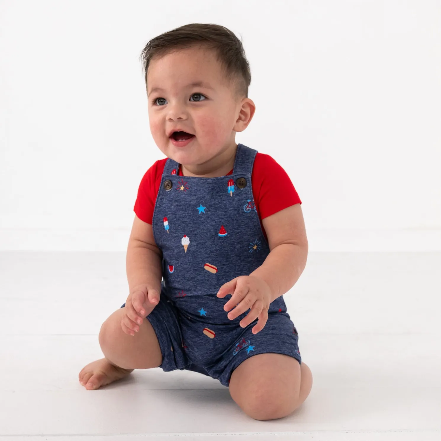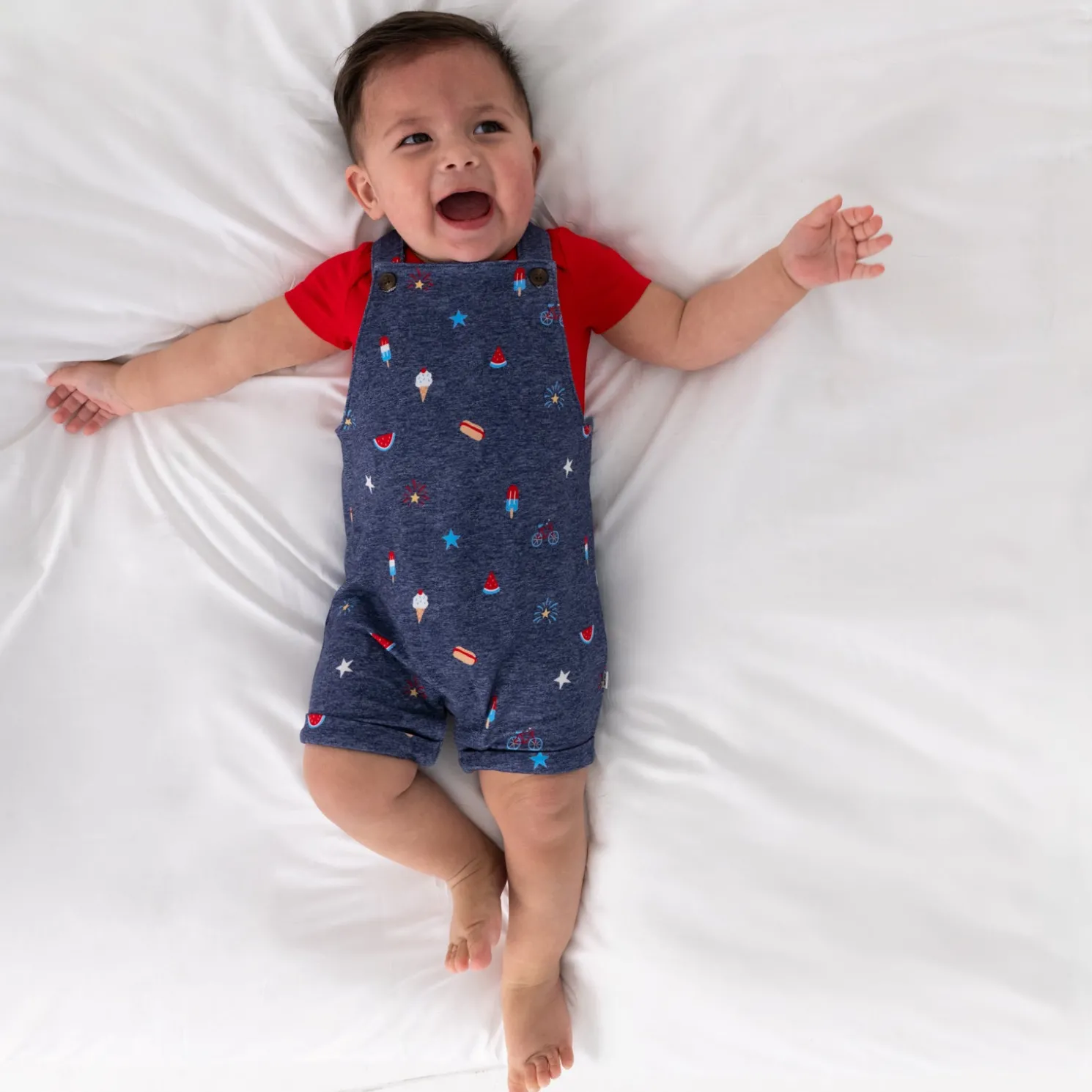 Cue the oohs and aahs! The Summer Celebrations Shorty Overall is booming with Fourth of July fun — fireworks, festive foods, and all the red, white, and cute your little love can wear. Made from soft and durable Soluxe®️Bamboo, it’s gentle on sensitive skin and ready for a full day of Play. With adjustable button straps, rolled-cuff legs, and ring snaps for easy changes, this star-spangled style is made for parades, picnics, and everything in between!