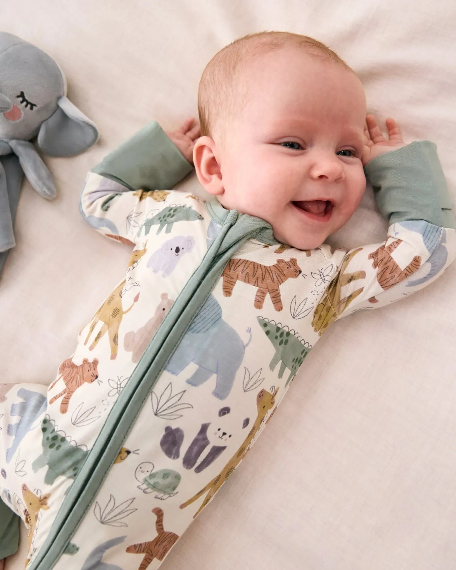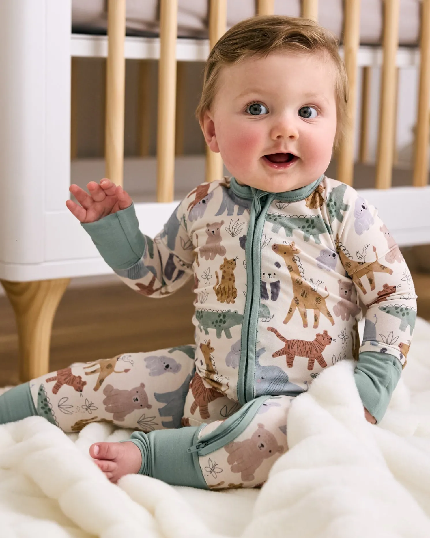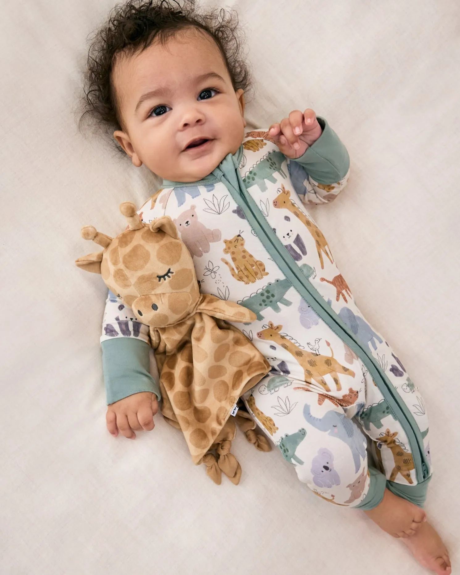 Add a little more comfort and cuteness to those first-year memories. Made from buttery soft Lunaluxe® Bamboo, this Sweet Safari Zippy is so gentle on baby’s delicate skin. It boasts mama-designed details you’ll love, like fold-over mittens to protect tiny cheeks, convertible feet that adapt as they grow, and a double zipper to make middle-of-the-night changes a little easier. Comes in a bamboo keepsake bag that can double as a gift bag.