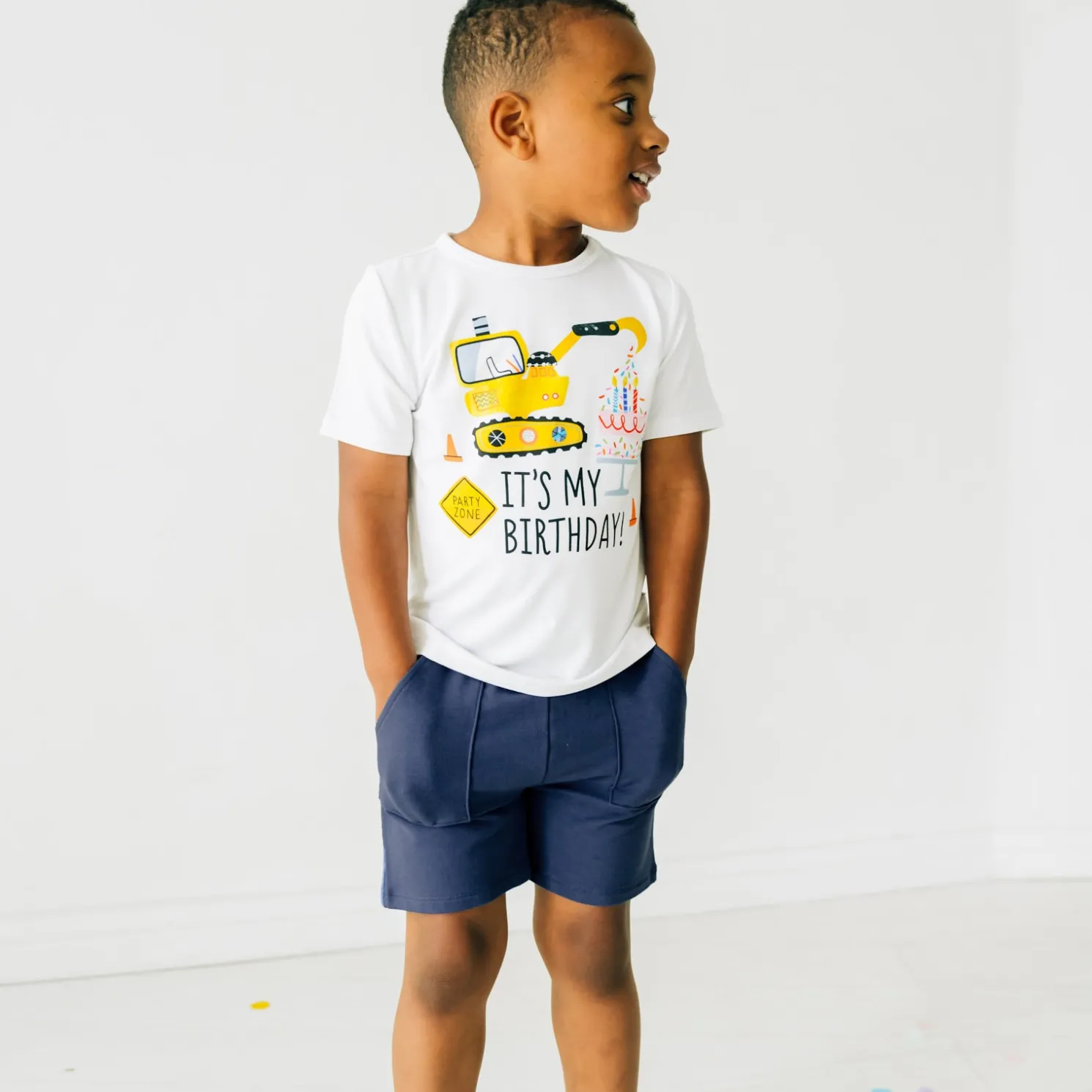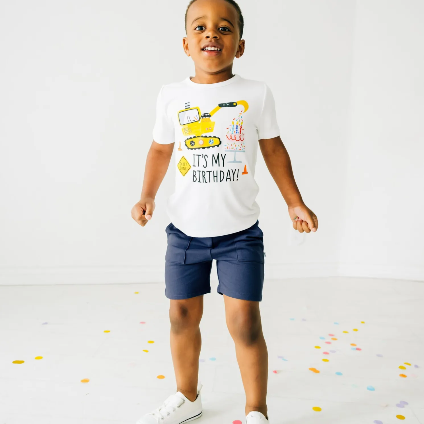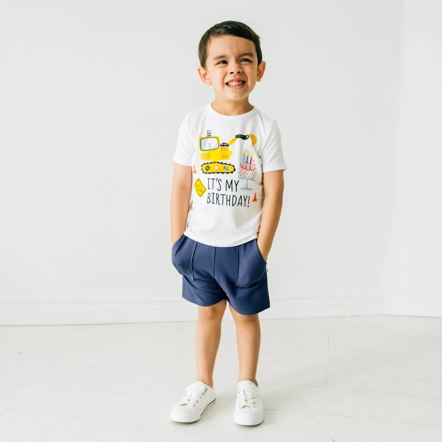 This Graphic Tee is just what your little construction lover needs to feel extra special on their special day! It’s made from a thicker version of our Soluxe® Bamboo, with no tags for extra comfort. We love it with our Vintage Navy Shorts!