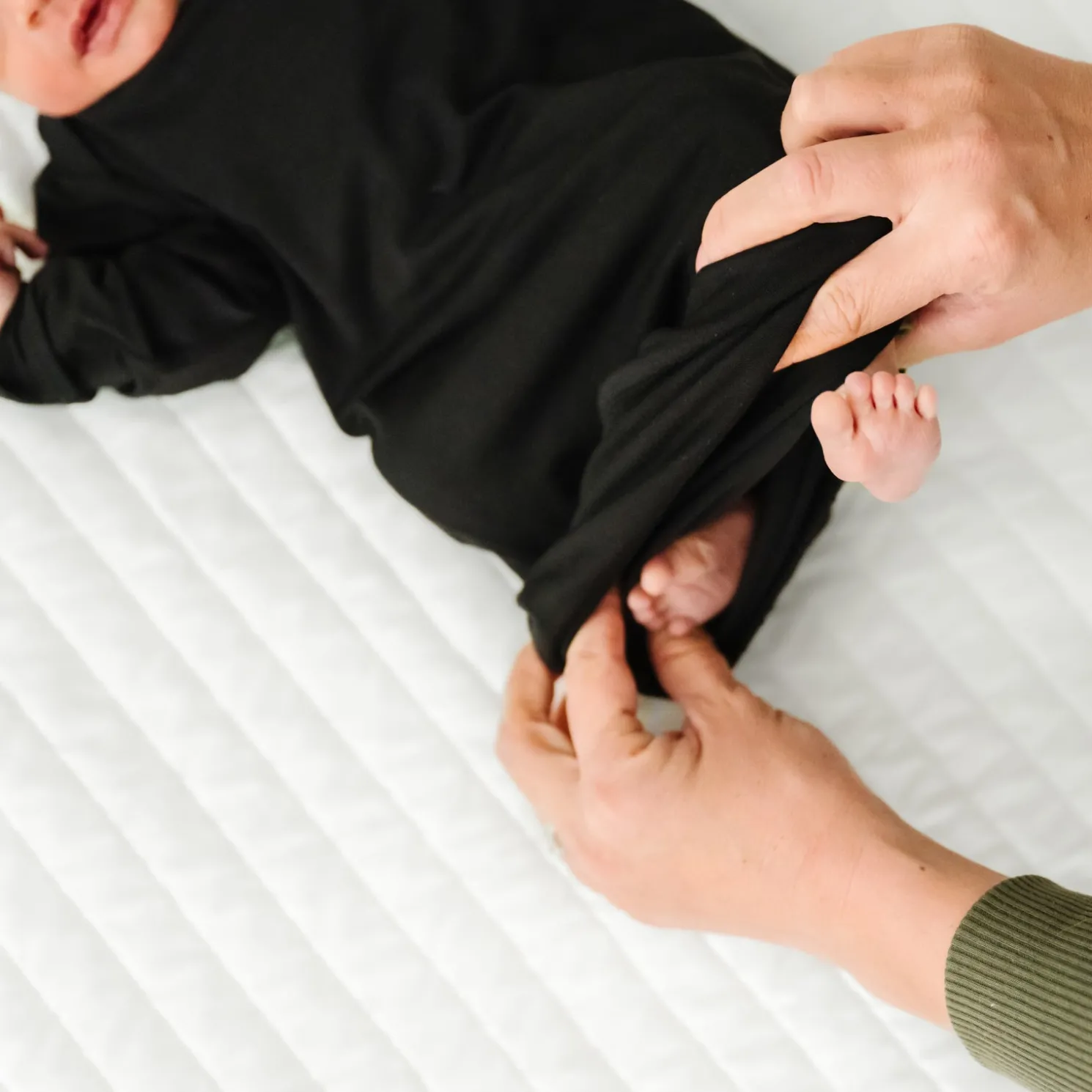 Treat your new arrival to the coziest black Infant Gown! This must-have newborn style marries the snugness of a Swaddle with the fold-over mittens of our Zippies. It’s made from our signature Lunaluxe® Bamboo, with lap shoulders for easy dressing and an envelope-style bottom to make diaper changes easy!