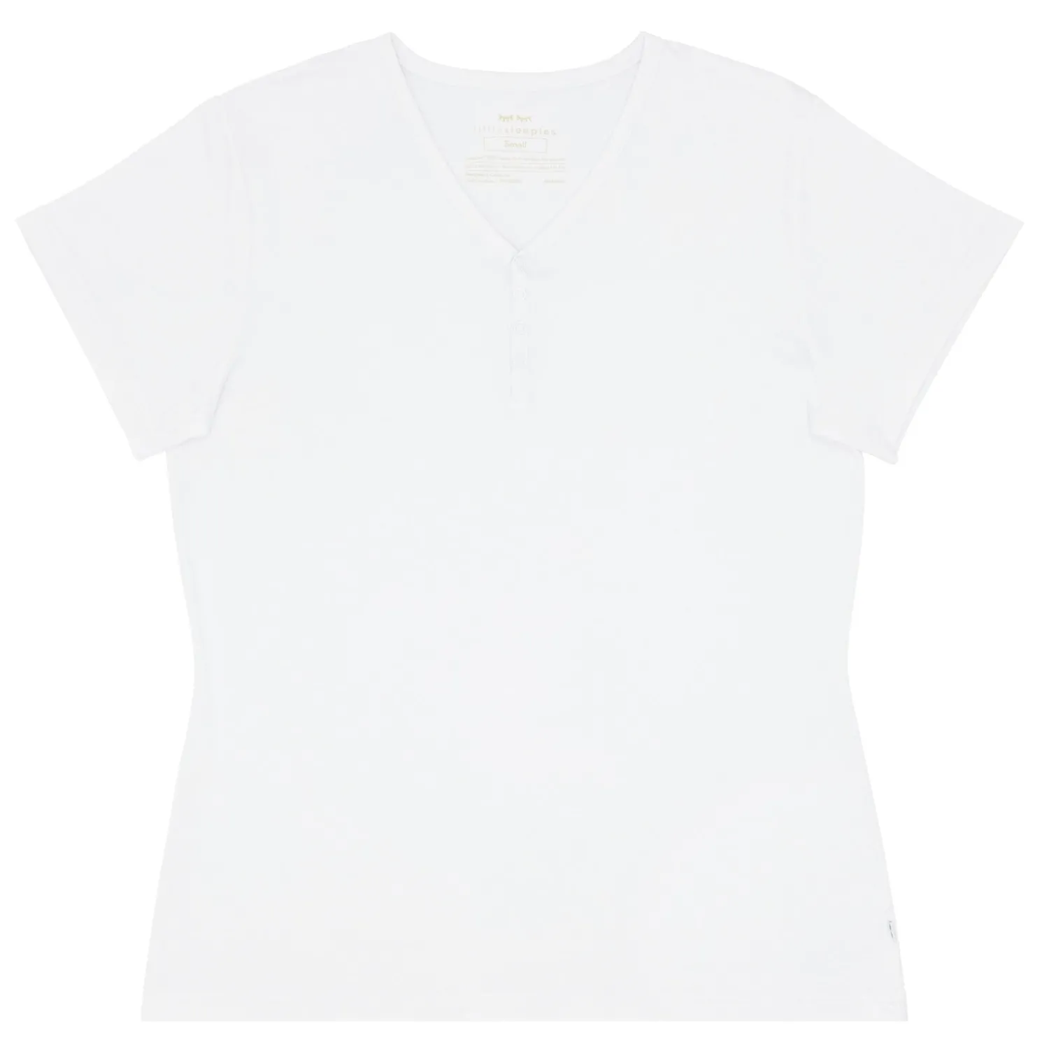 - Henley snap-front placket for easy nursing access