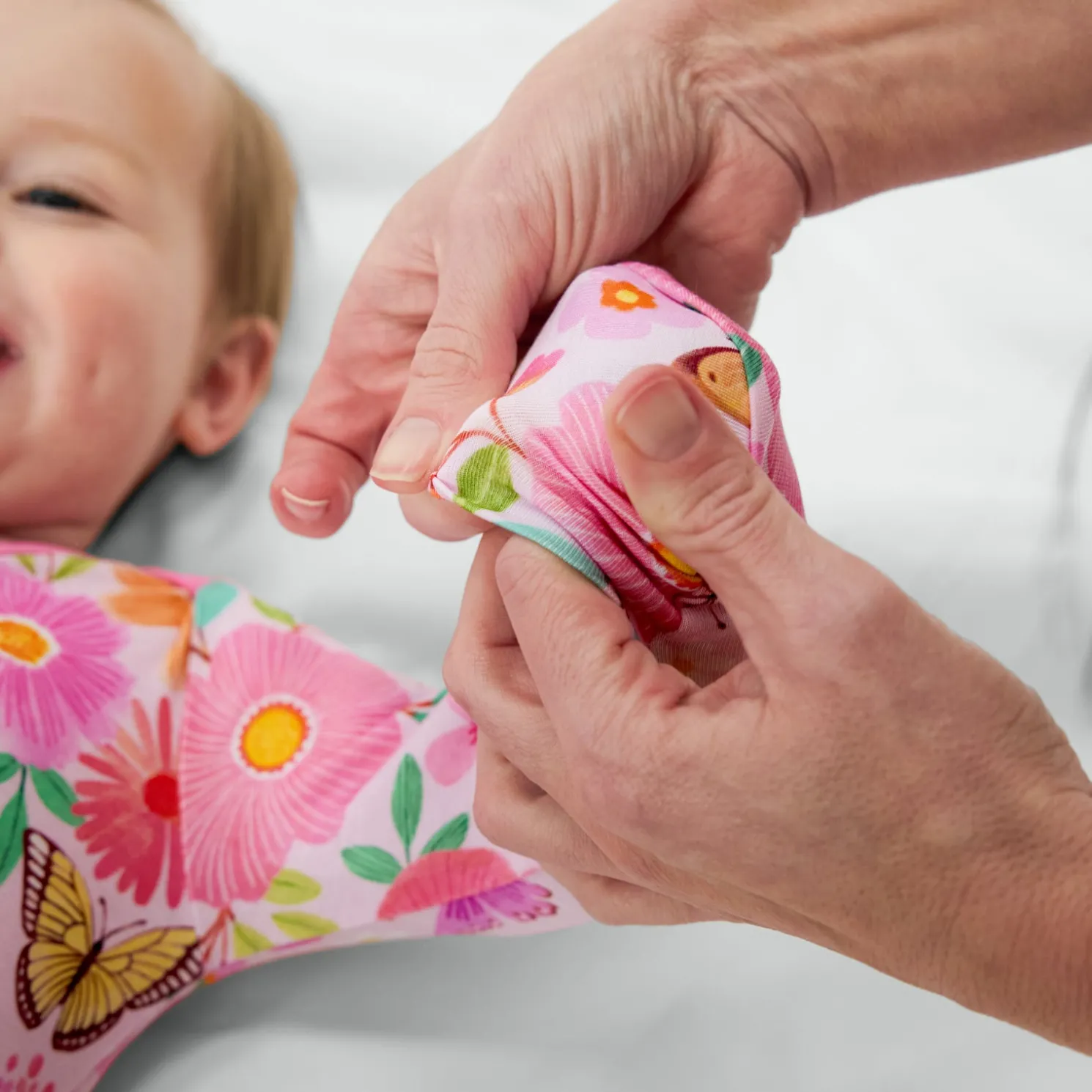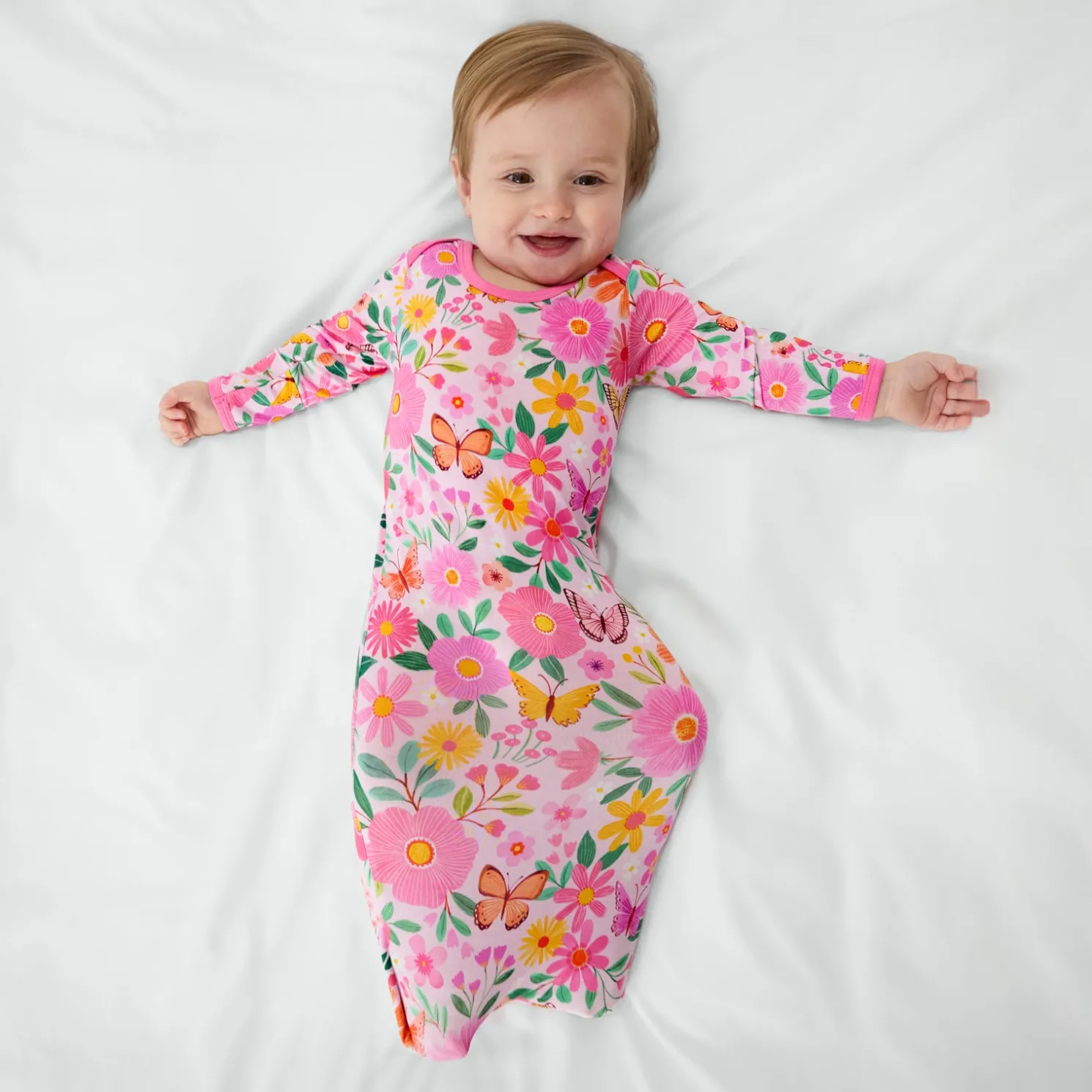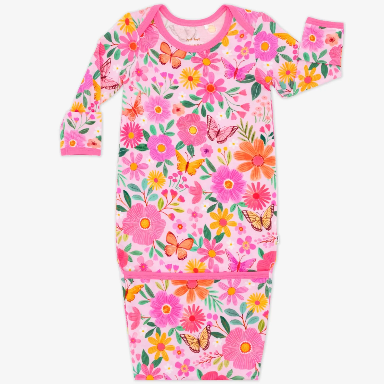 Welcome your little one into the world with the Butterfly Blooms Infant Gown! Featuring a dreamy floral and butterfly print, this newborn essential is made from Lunaluxe® Bamboo for cozy comfort on delicate skin. Thoughtful details like fold-over mittens, lap shoulders, and an envelope hem make dressing and diaper changes a breeze. Perfect for matching with mom during those first sweet snuggles!