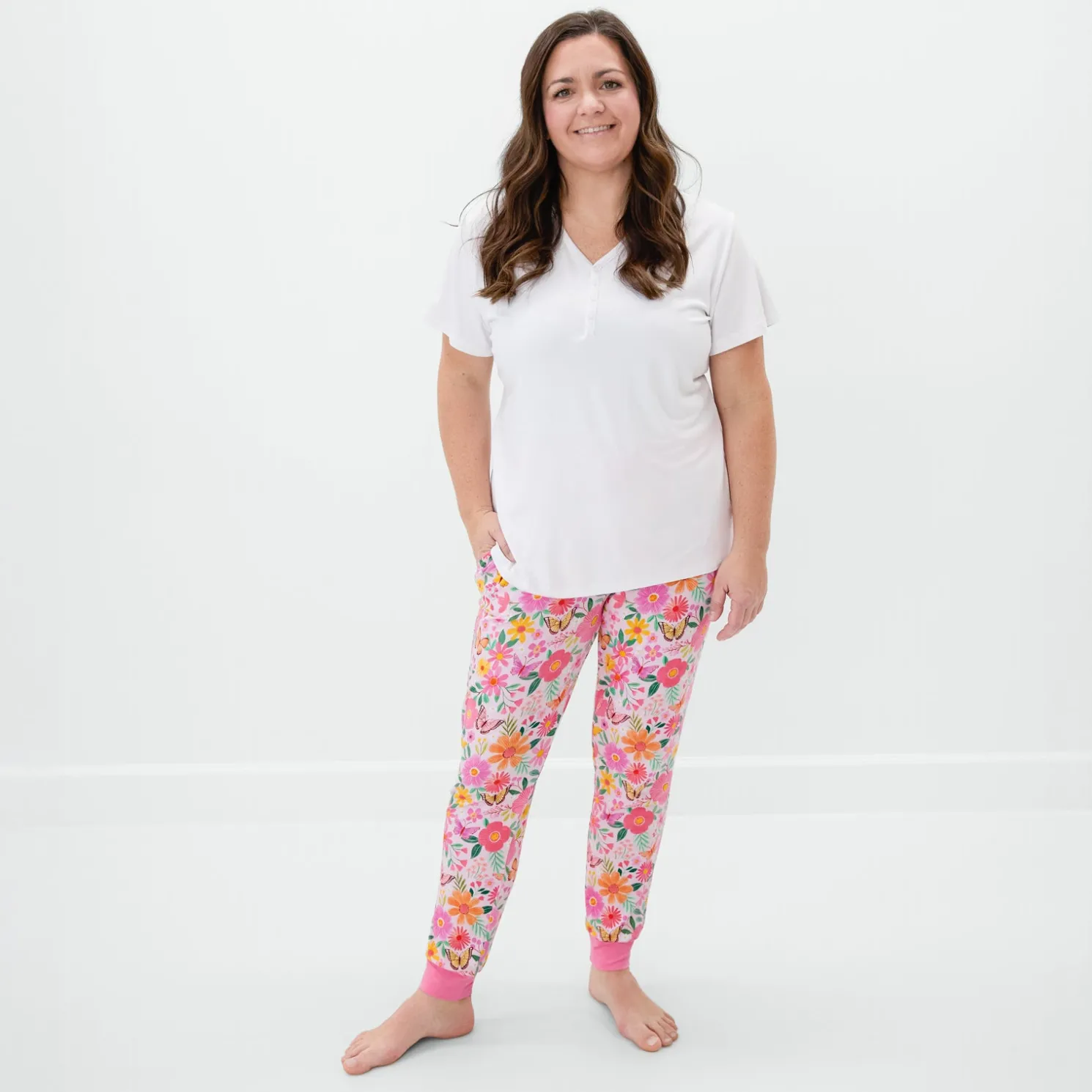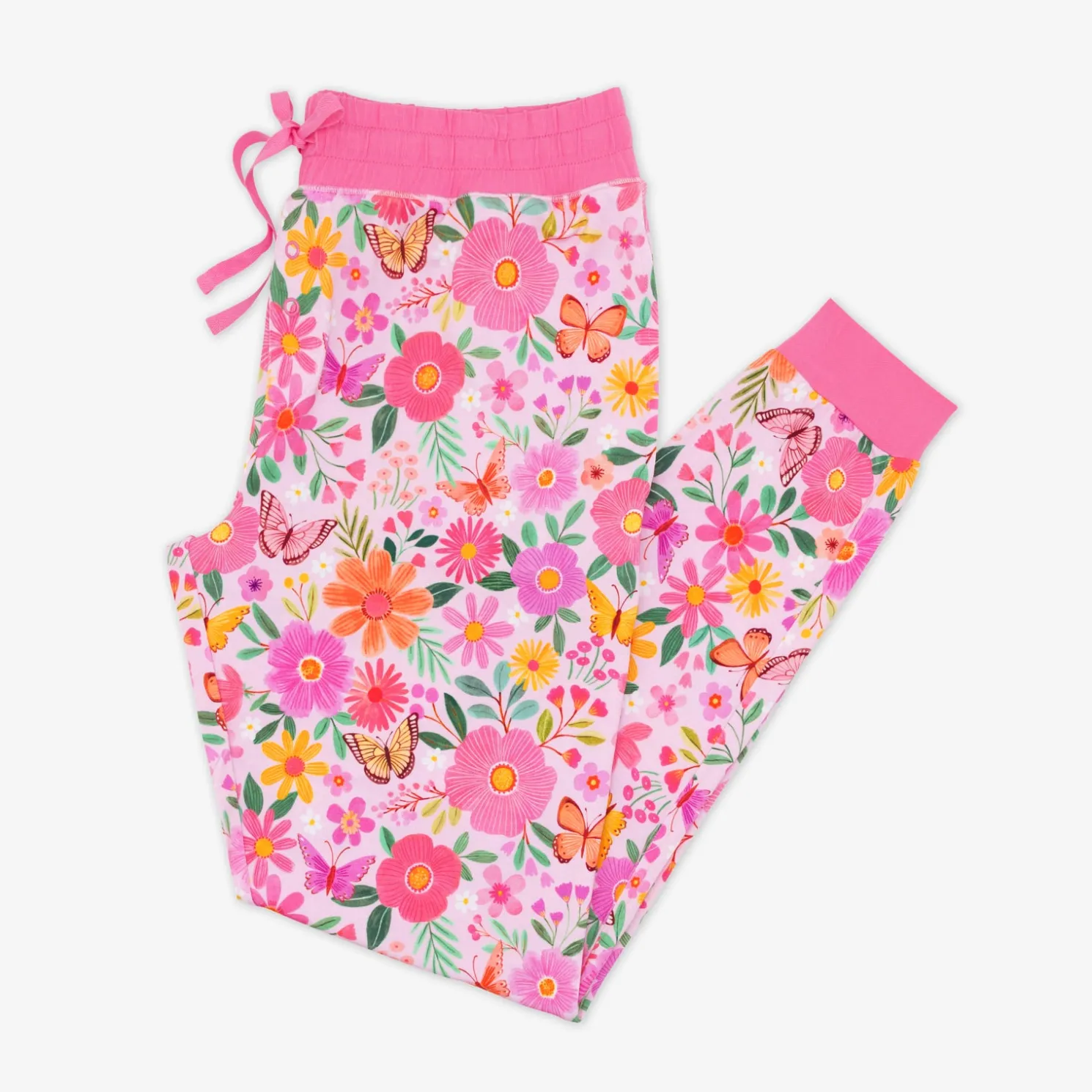 Flutter into bedtime with the Butterfly Blooms Pajama Pants! Featuring a dreamy floral and butterfly print, these jogger-style pants are made from buttery soft Lunaluxe® Bamboo, which is oh-so gentle on sensitive skin. With an elastic waistband, adjustable drawstring, and deep pockets, they’re a comfy pick for matching with your little one on Mother’s Day. Pair with the Bright White Women’s Short Sleeve PJ Top to complete the look!