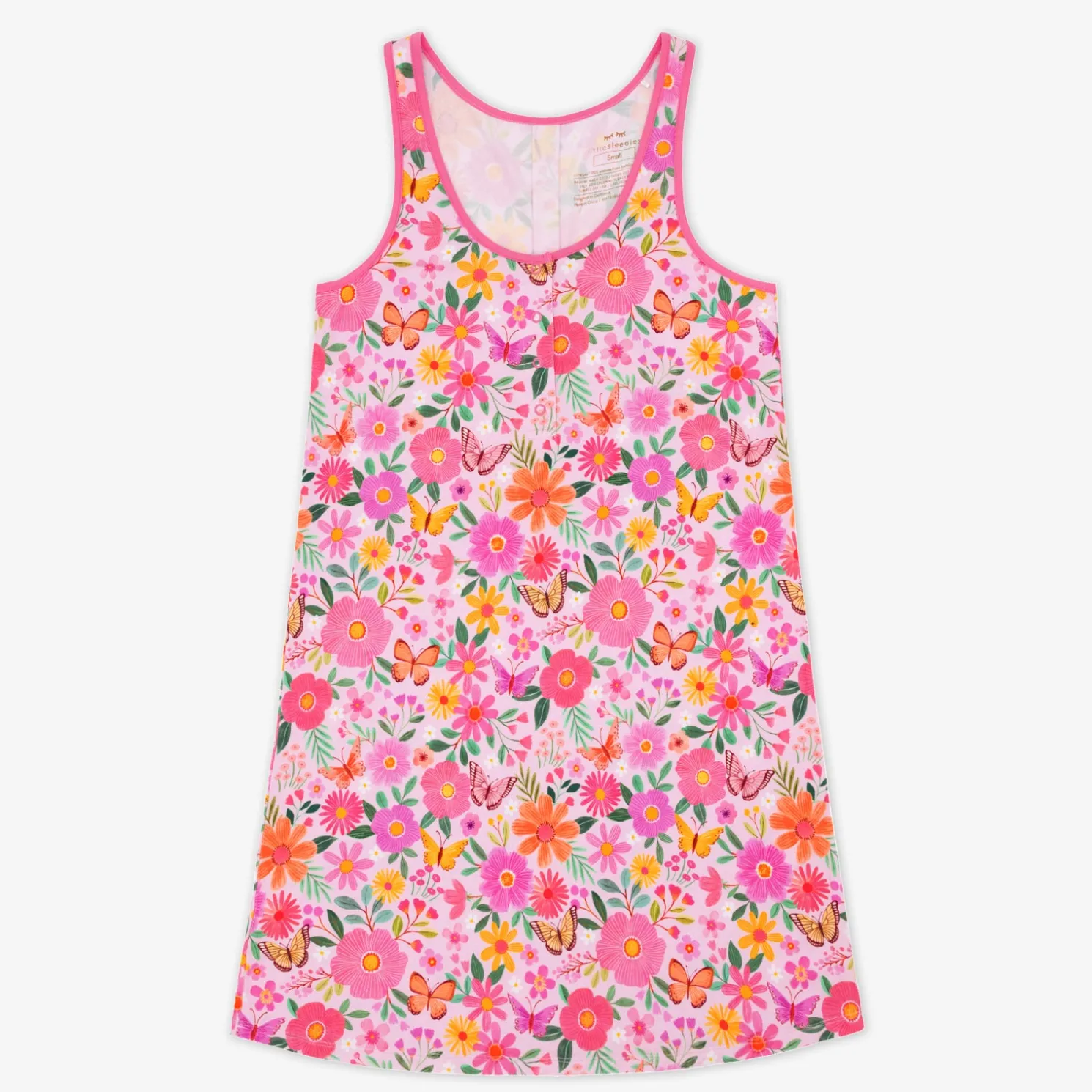 Drift into dreamy comfort with the Butterfly Blooms Sleeveless Nightgown! Featuring a vibrant floral and butterfly print, this breezy nightgown is made from buttery soft Lunaluxe® Bamboo, perfect for keeping cool while you sleep. With a relaxed fit and snap-front placket for easy nursing access, it’s designed for comfort and charm. A beautiful choice for matching moments with your little one!