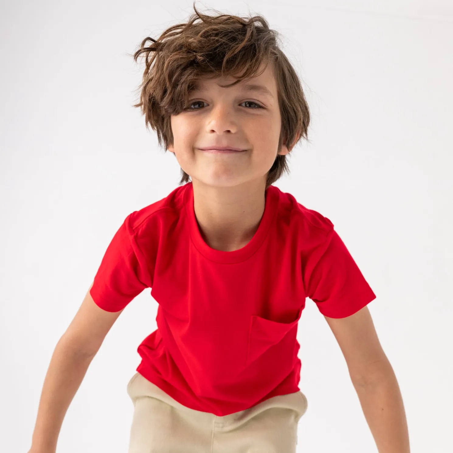 Can’t go wrong with some color! Our Candy Red Relaxed Pocket Tee is the bright pop of red they can wear all year long. This solid Play top is made from soft and durable Soluxe® Bamboo. It pairs perfectly with our Fourth of July collection!