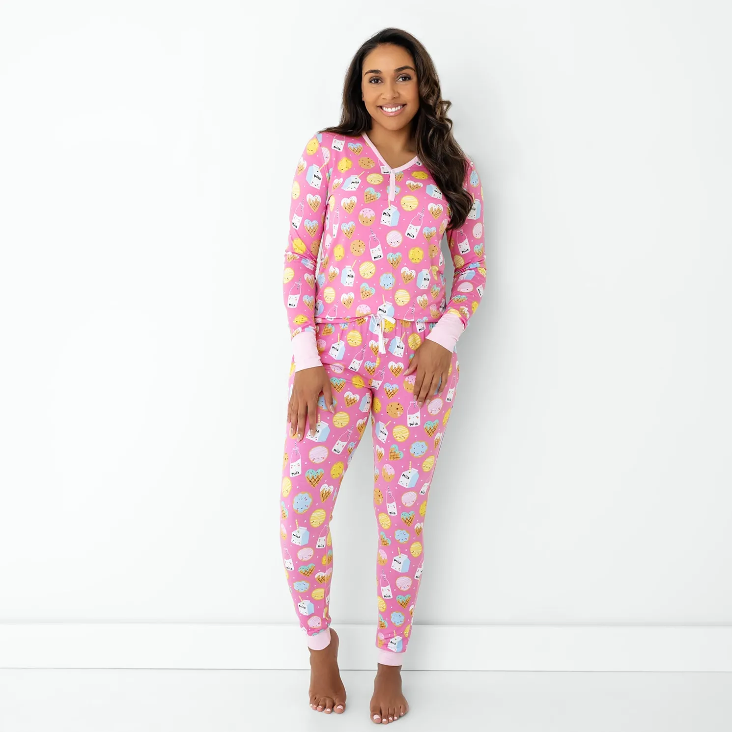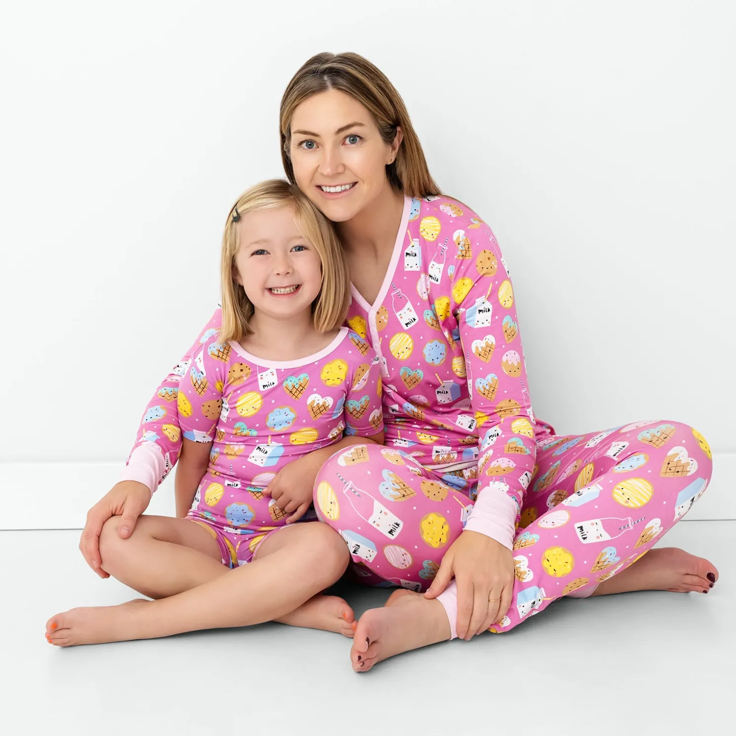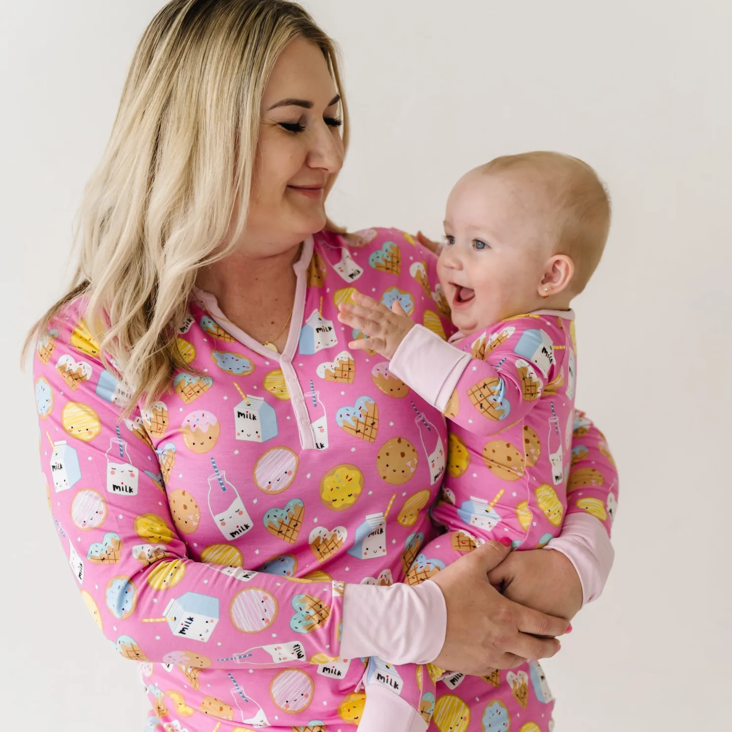 Go ahead mama, you deserve a sweet treat. Featuring sleepy and smiley cookies & milk on a light pink background, this PJ Top is made from our signature Lunaluxe® Bamboo. The relaxed v-neck makes it extra comfy, with snaps at the neckline for easy nursing access. Pair it with the matching pants to complete the set, then snag styles for the whole fam!