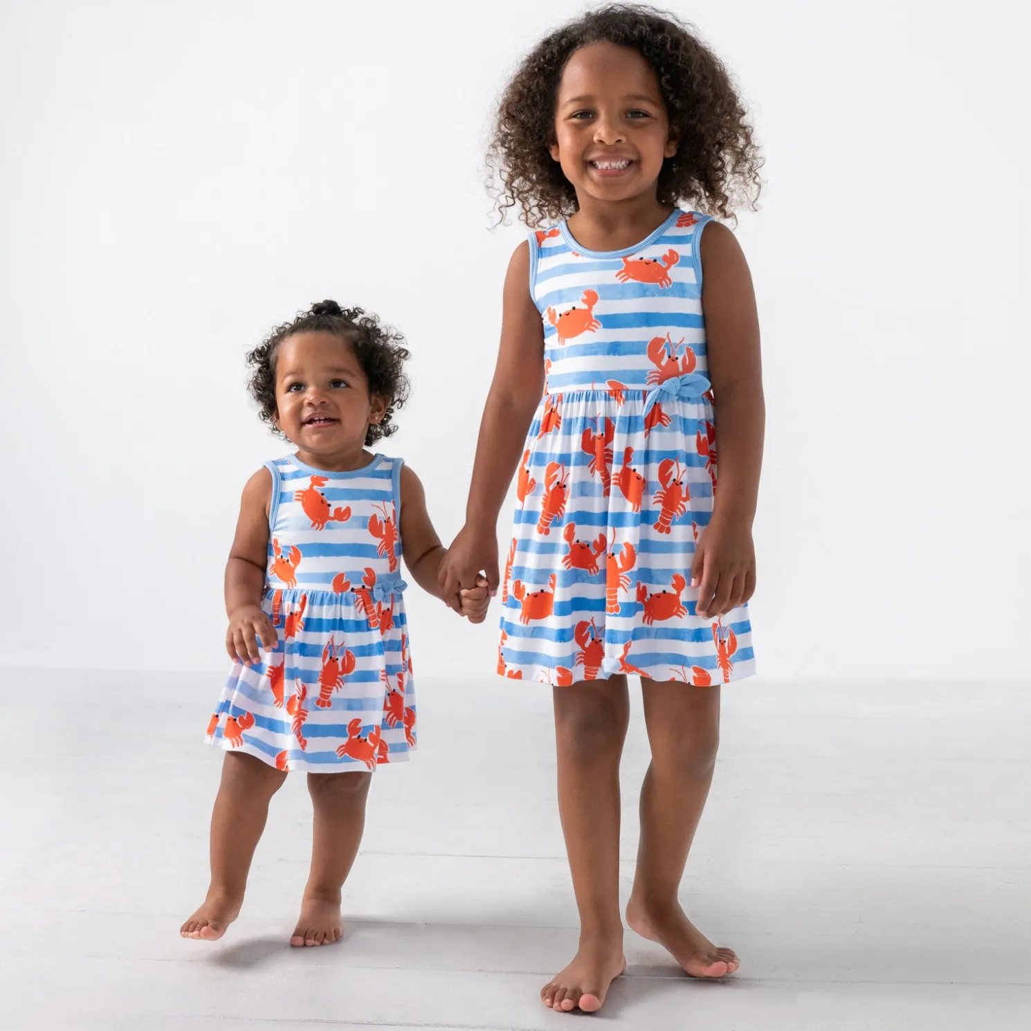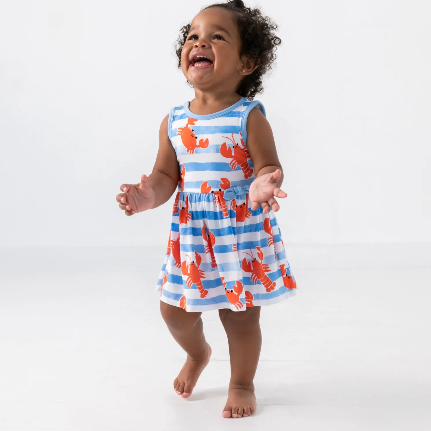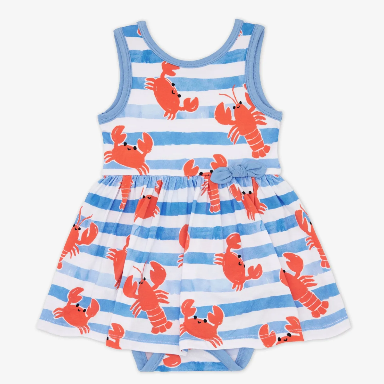 Crabby never looked so cute! The Crustacean Crew Skater Dress is made from durable and soft Soluxe® Bamboo — perfect for crawling or cuddles! With a built-in snappable bodysuit and straight-across hem that shows off every smiling crab and lobster, this Play-ready piece brings a pinch of fun to sibling matching moments or special occasions.