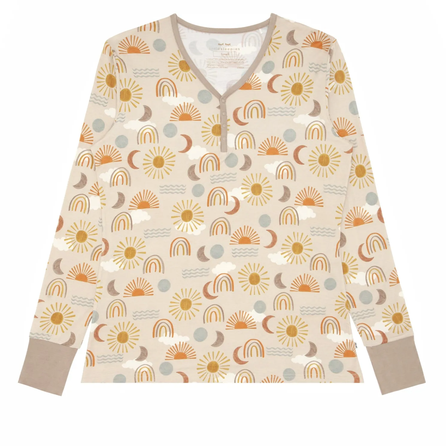 Good morning, sunshine! This super-soft PJ top features dreamy celestial motifs in muted shades of brown & blue. Designed by a mama and made from our signature Lunaluxe® Bamboo, with thoughtful details that make life easier — like front snaps for nursing access. Pair it with the matching pants to make a set, then snag styles for the kiddos, too!