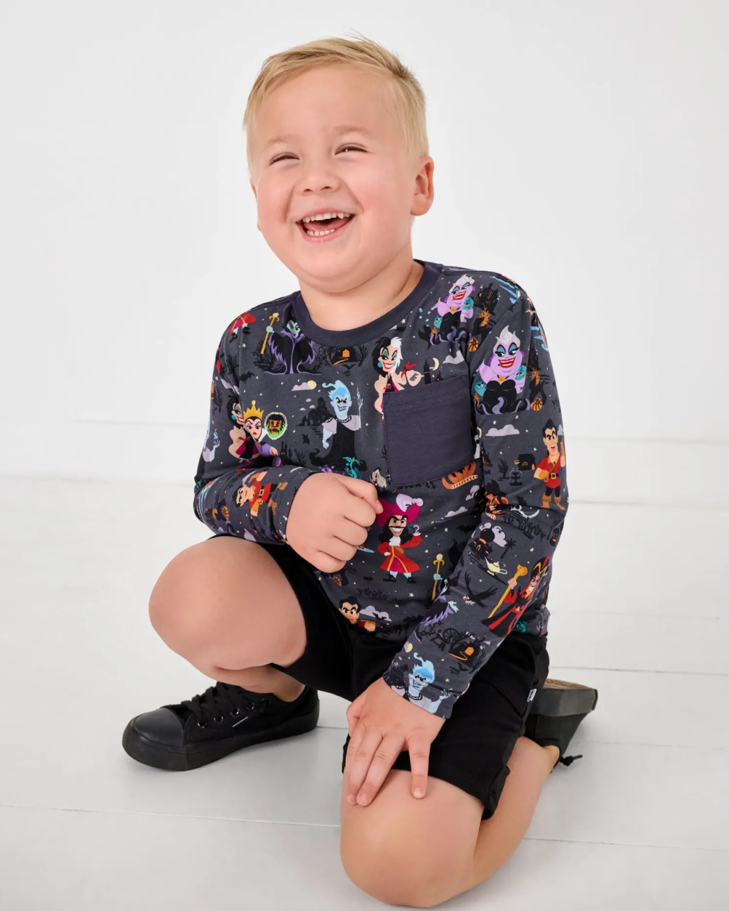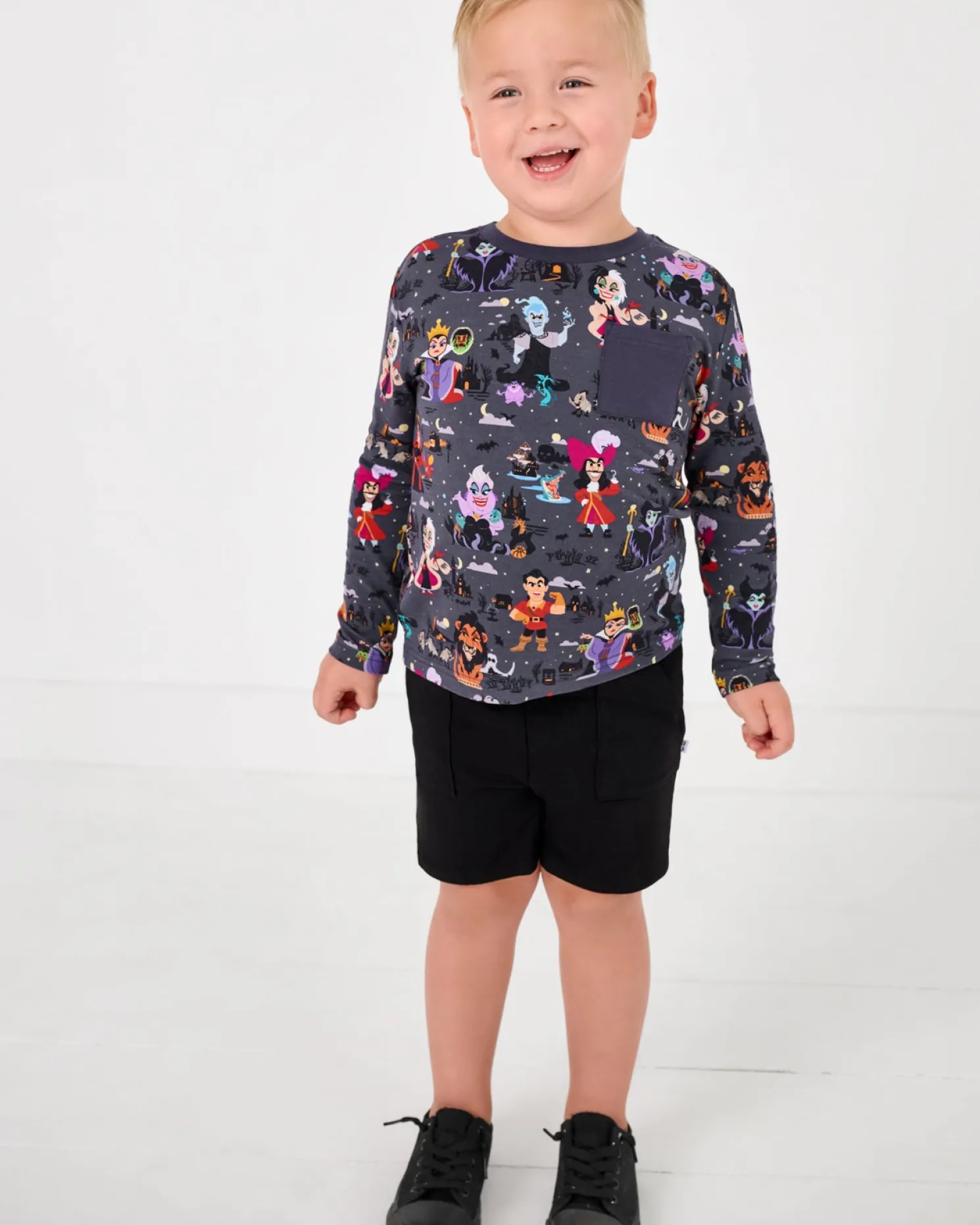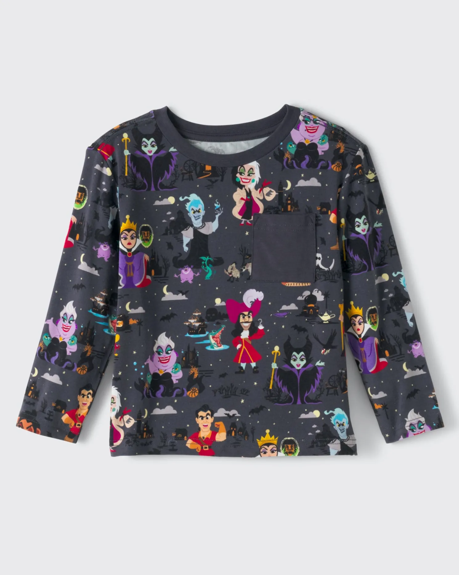 Add a mischievous twist to their day! Made from our super-soft and durable Soluxe® Bamboo, the Disney Villains Relaxed Pocket Tee features iconic Disney Villains on a dark gray background. With a relaxed fit and front pocket perfect for storing little treats, it’s wickedly comfortable and perfect for mixing and matching with their favorite LS bottoms!