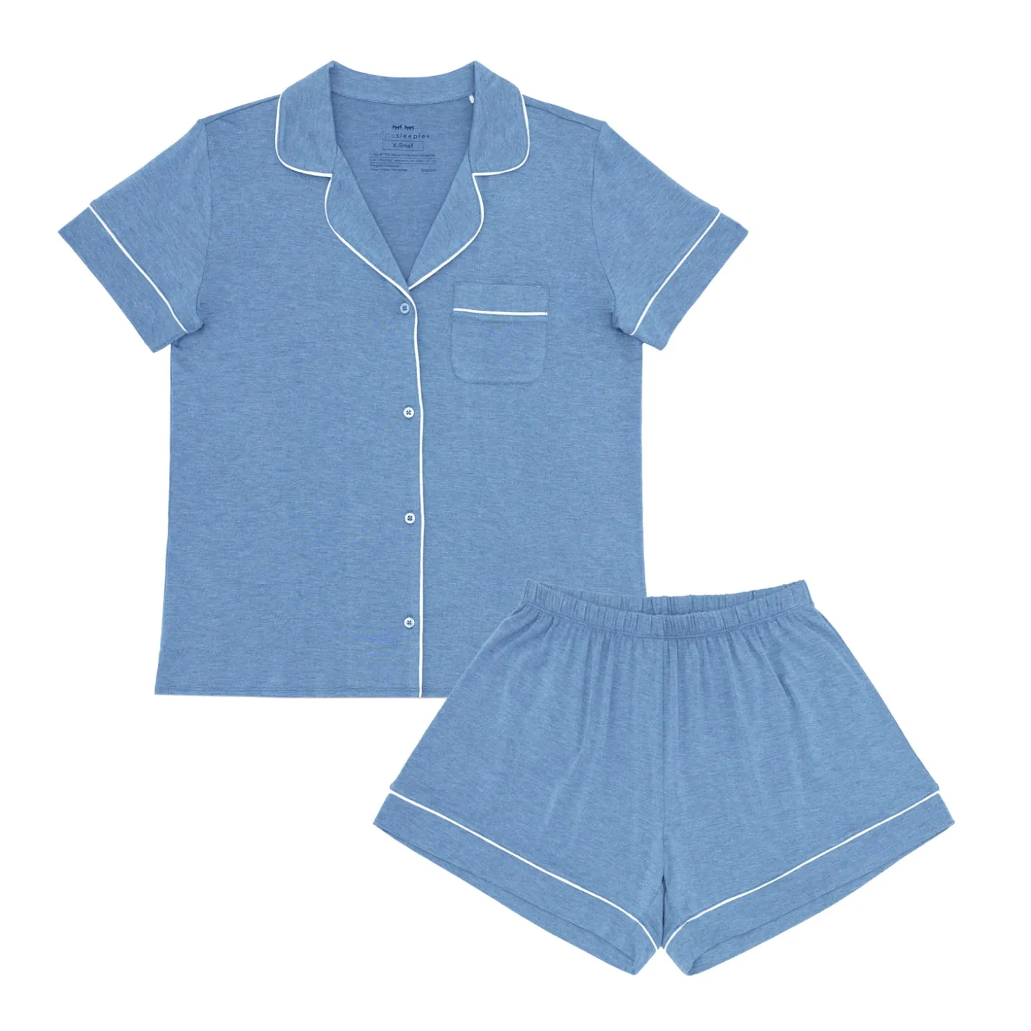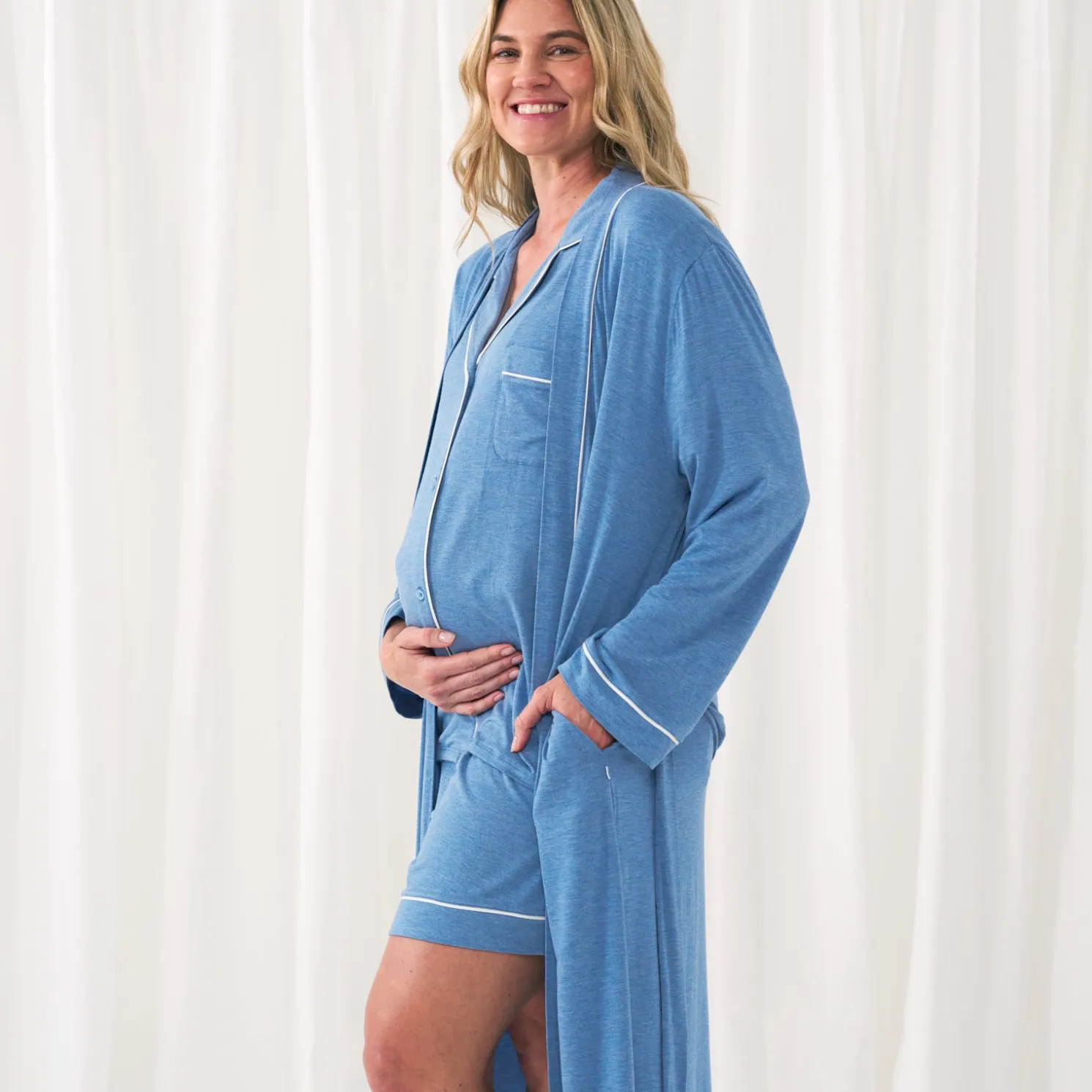 Our Women’s Pajama Sets are designed for each stage of mama-hood — but also, just everyday coziness! Made from buttery soft Lunaluxe® Bamboo, this Heather Blue PJ Set boasts a button-down top for easy nursing access and contrast piping for a cute & classic look. Snag a matching sleep style for your little one!
