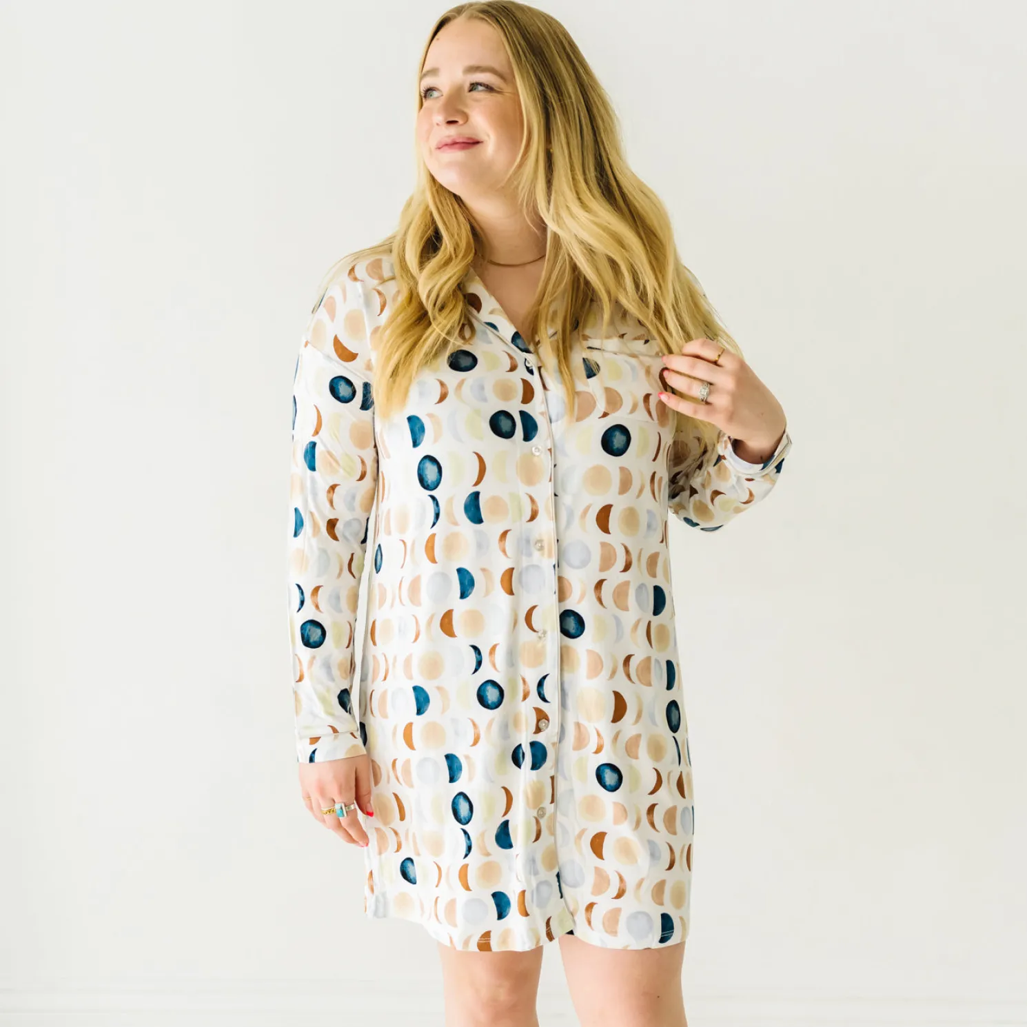 Dreamiest print ever! Featuring phases of the moon in neutral watercolor shades, this Sleep Shirt is made from our buttery soft Lunaluxe® Bamboo. Designed by a mama, it features buttons down the front for easy nursing access. Grab styles for mommy & me matching moments!