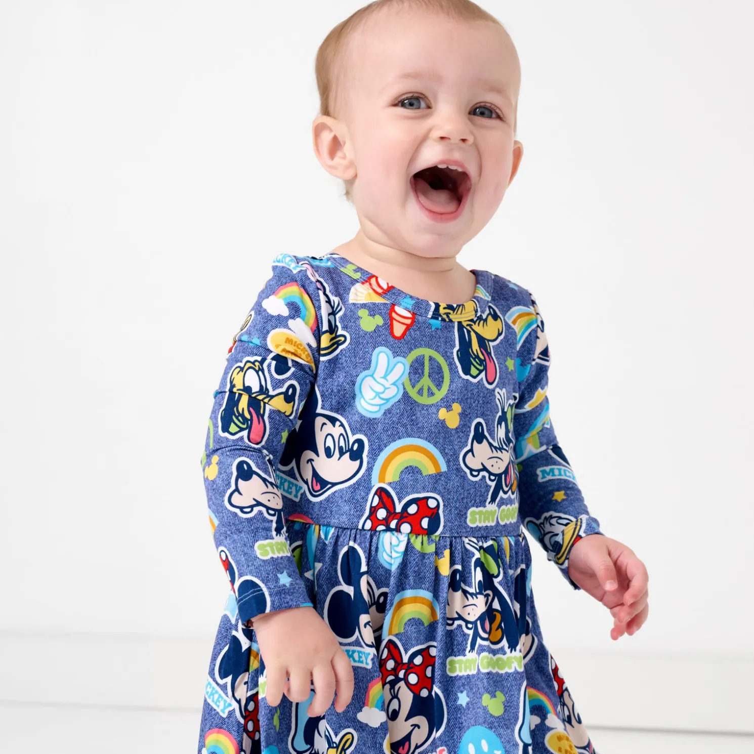 Time to twirl and Play the Disney way! Featuring Disney’s Mickey Mouse, Minnie Mouse, and their friends, this girls’ dress is crafted from super-soft Soluxe® Bamboo that’s as comfy as it is durable. No scratchy tags, two pockets for storing stickers, and a twirl-worthy skirt make this dress a go-to for playtime adventures. Plus, the hidden bodysuit makes changes quick & easy. Don’t forget to grab coordinating styles for the sweetest sibling matching!