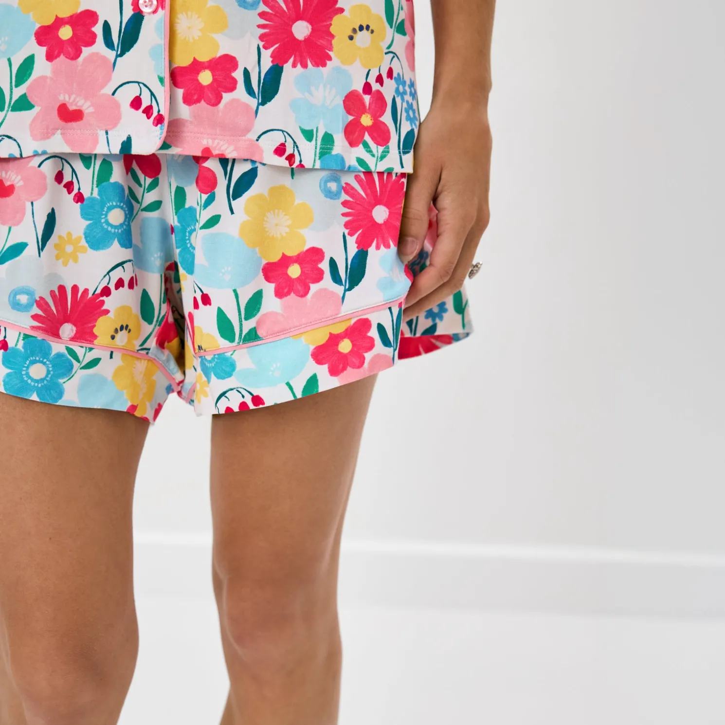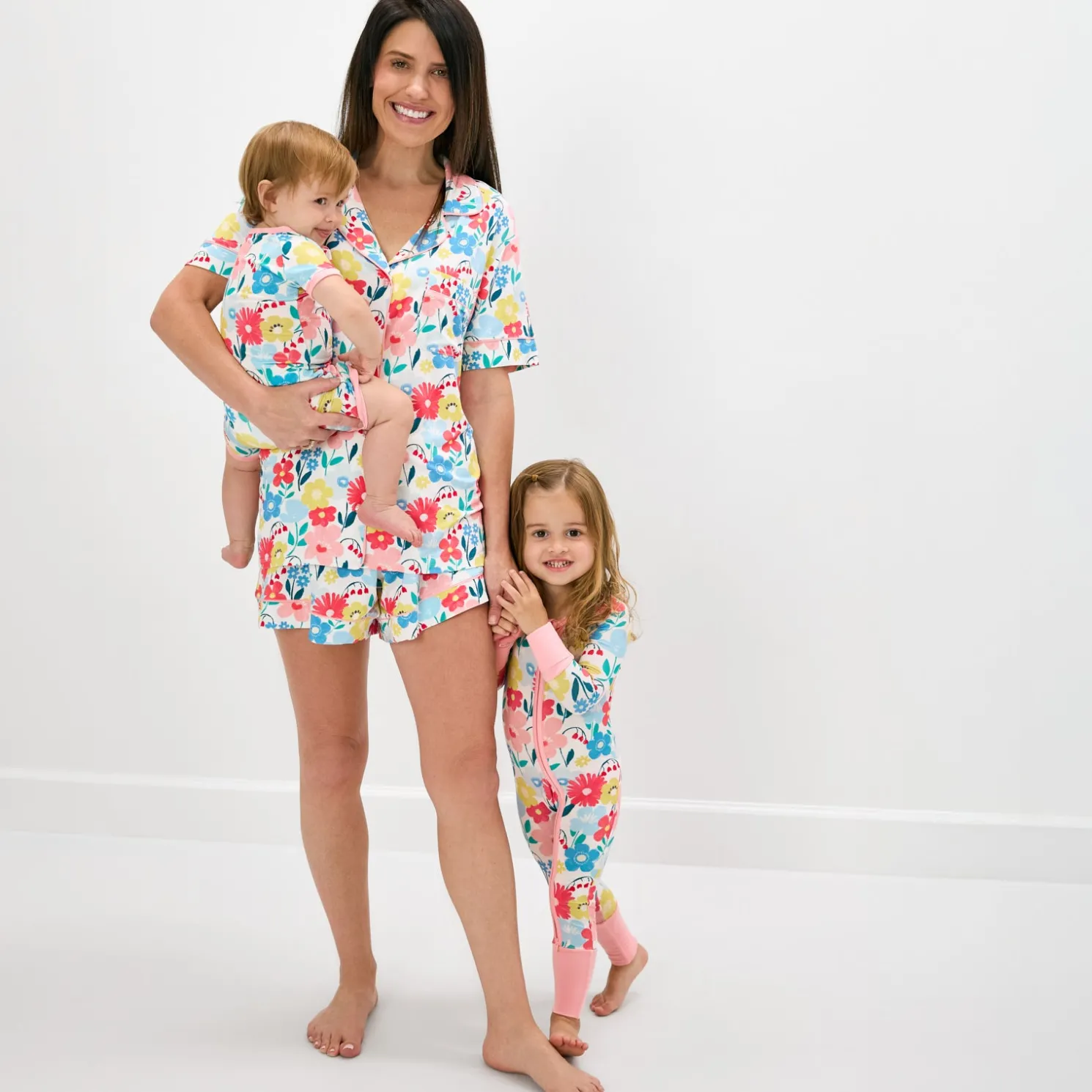 A meadow full of magic! The Midsummer Meadow Women’s Pajama Set features the prettiest Scandi-inspired floral on custom-milled Lunaluxe® Bamboo. This matching pajama set has a button-down top for easy nursing access and relaxed fit that’s bump friendly. Perfect for mommy & me matching with your little wildflower!