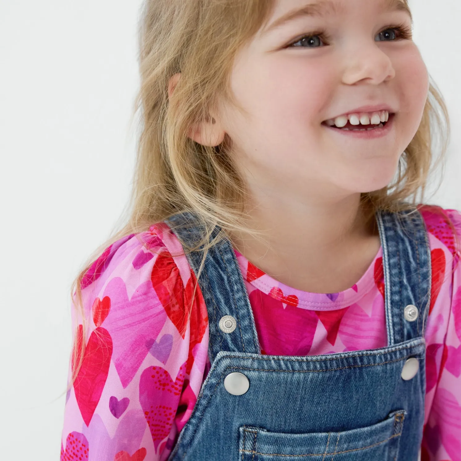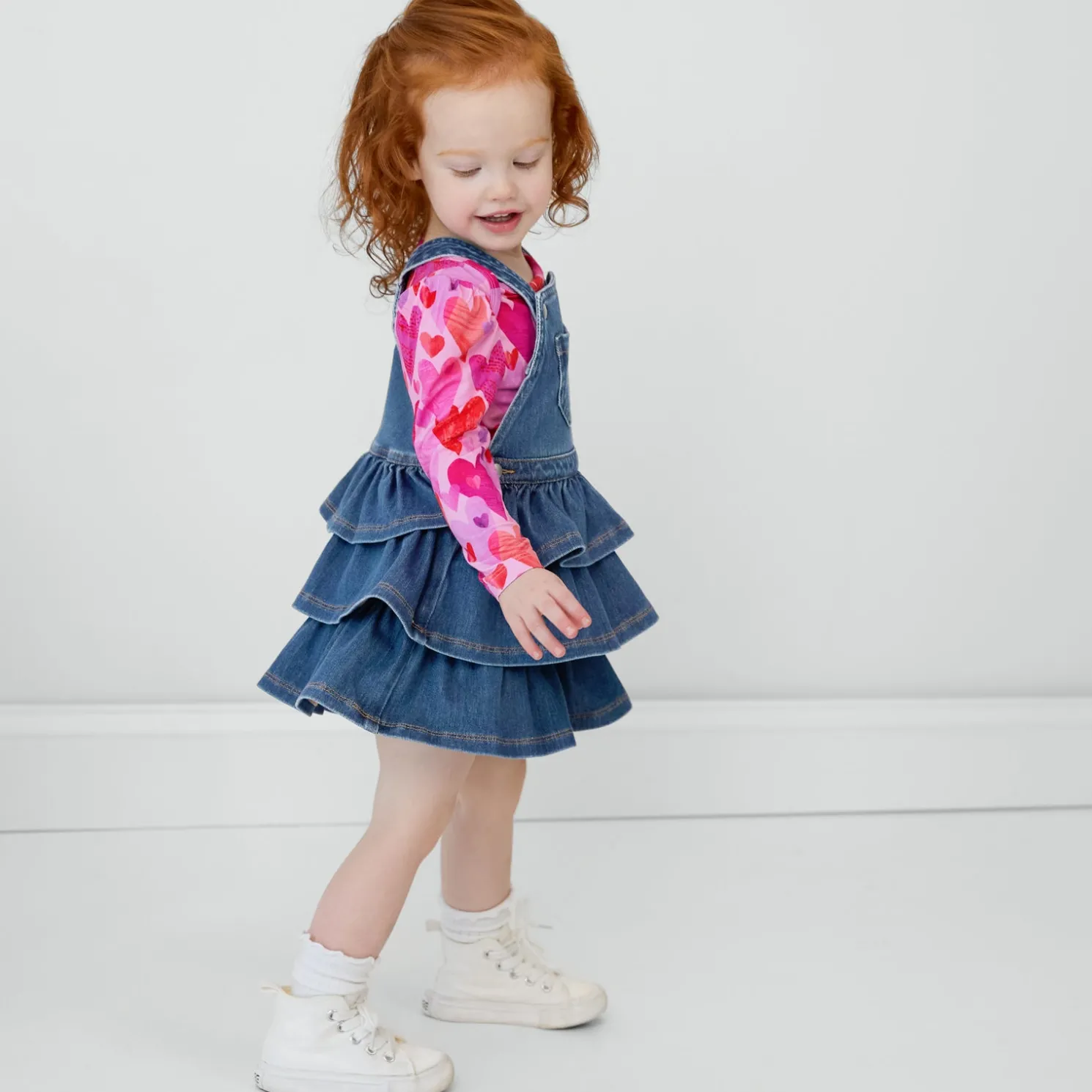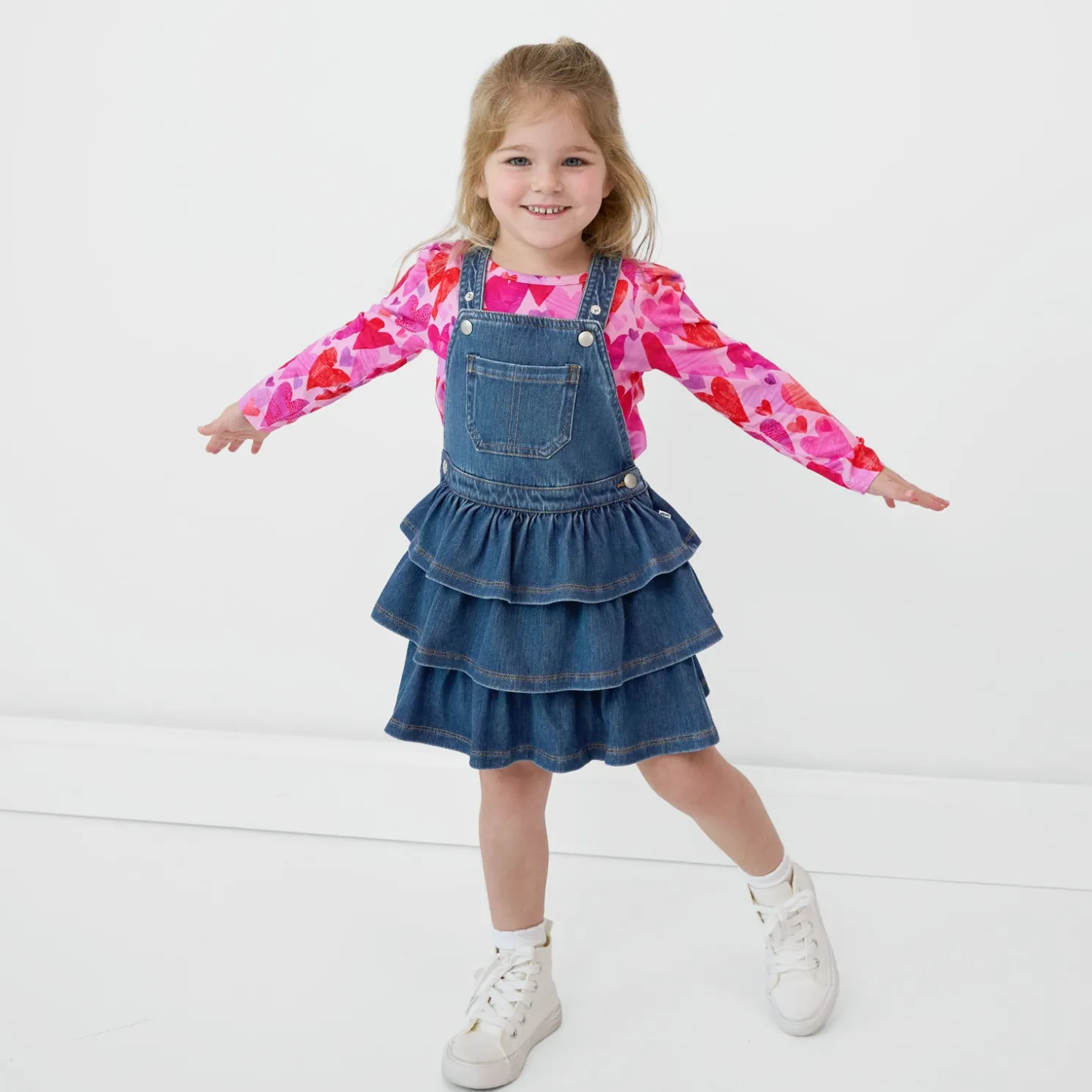 A building block of your little girl’s closet! With an overall-style top and four flouncy skirt layers on the bottom, this one-piece will bring comfort and style to all their everyday adventures. It’s crafted with our super-soft and durable Soluxe® Bamboo blend, complete with a chest pocket perfect for storing little treasures. Layer it over her favorite LS tee and leggings!