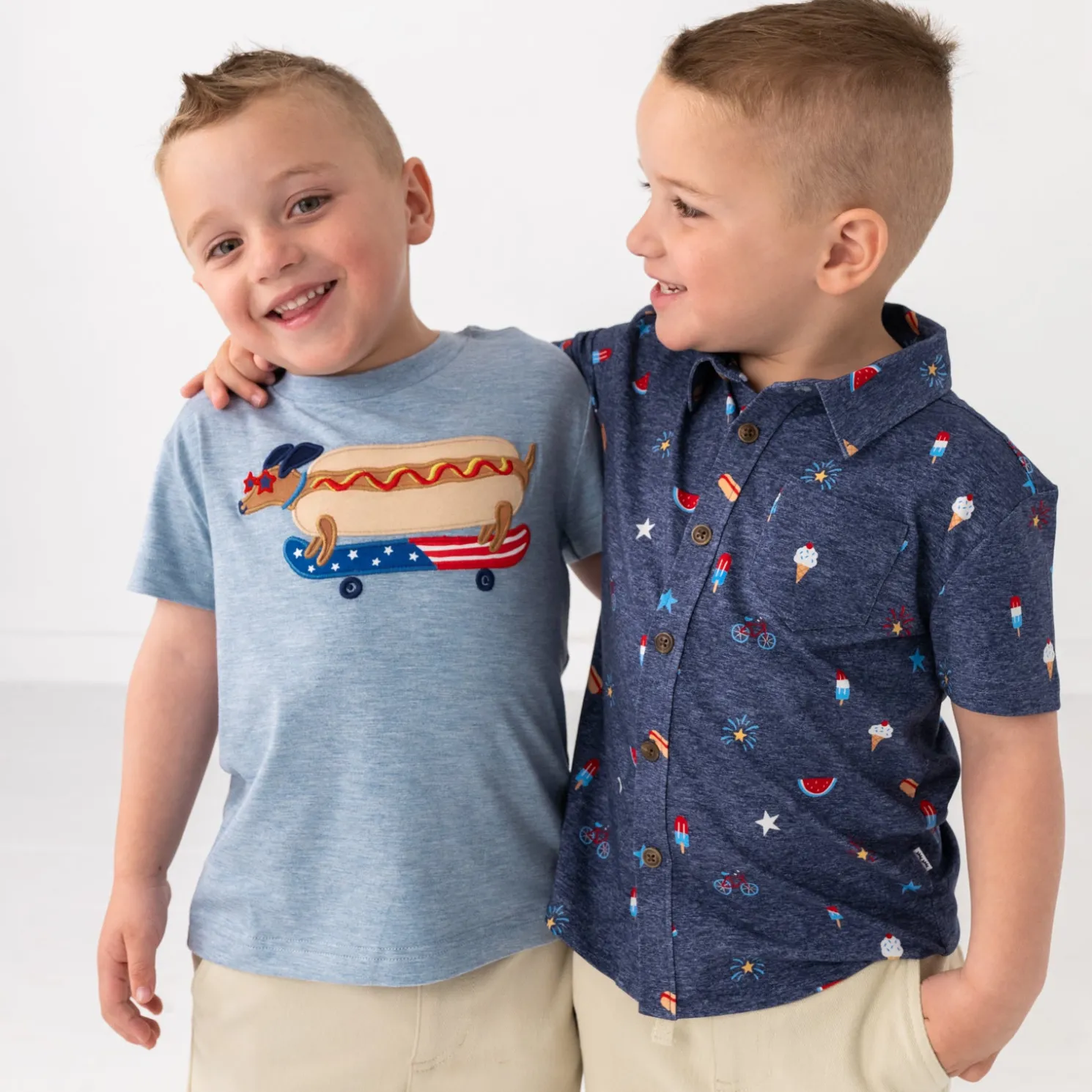 Well, hot dog! Keep the party rolling in the Red, White & Woof Relaxed Tee. Made from super-soft and durable Soluxe® Bamboo, this Play tee is breathable for backyard BBQs and gentle on sensitive skin. Mix and match with your fave LS shorts!