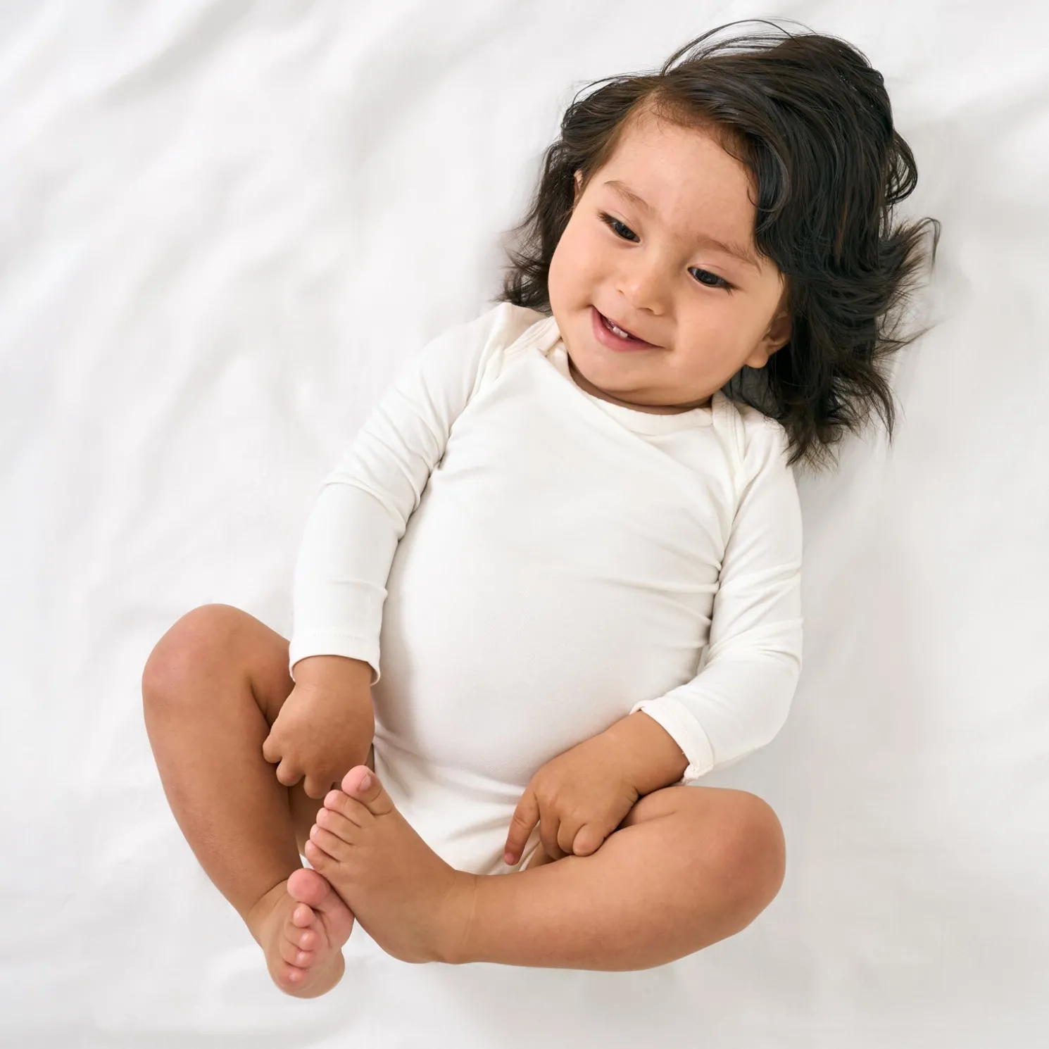 A building block of baby’s closet, this super-soft bodysuit is perfect for preschool, playtime & beyond! It’s made from long-lasting Soluxe® Bamboo, in a goes-with-everything shade of Soft White. No scratchy tags makes for a happy baby, while easy snaps make changing a breeze.