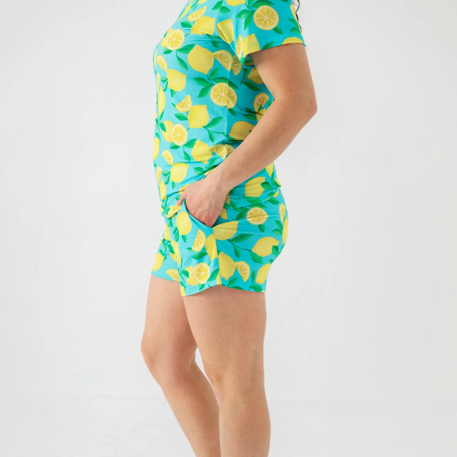 Take a slice of sunshine to bed in the Sunny Citrus Women’s Pajama Shorts! With cheerful lemons on a bright blue background, these flowy, feel-good shorts are made from buttery soft Lunaluxe® Bamboo. The wide elastic waistband and adjustable drawstring make them bump-friendly, while side pockets add a sweet touch of convenience. Perfect for lounging, snoozing, or soaking up sunshine! Pair them with the matching top for an even sweeter look.