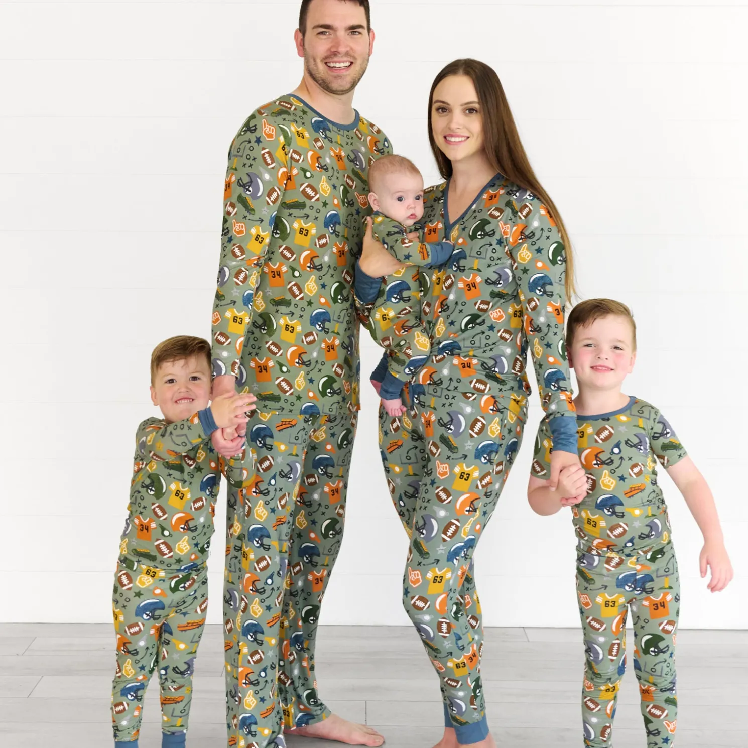 Match with your little football player in this comfy PJ top! Made from our signature Lunaluxe® Bamboo, with a relaxed cut that will make it your new favorite! Pair it with the matching pants to make a set, then snag styles for the kiddos for picture-perfect couch snuggles.